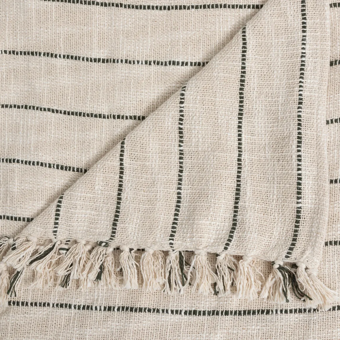 Colcha Tropical Panama Rayas Marfil Y Verde Caqui