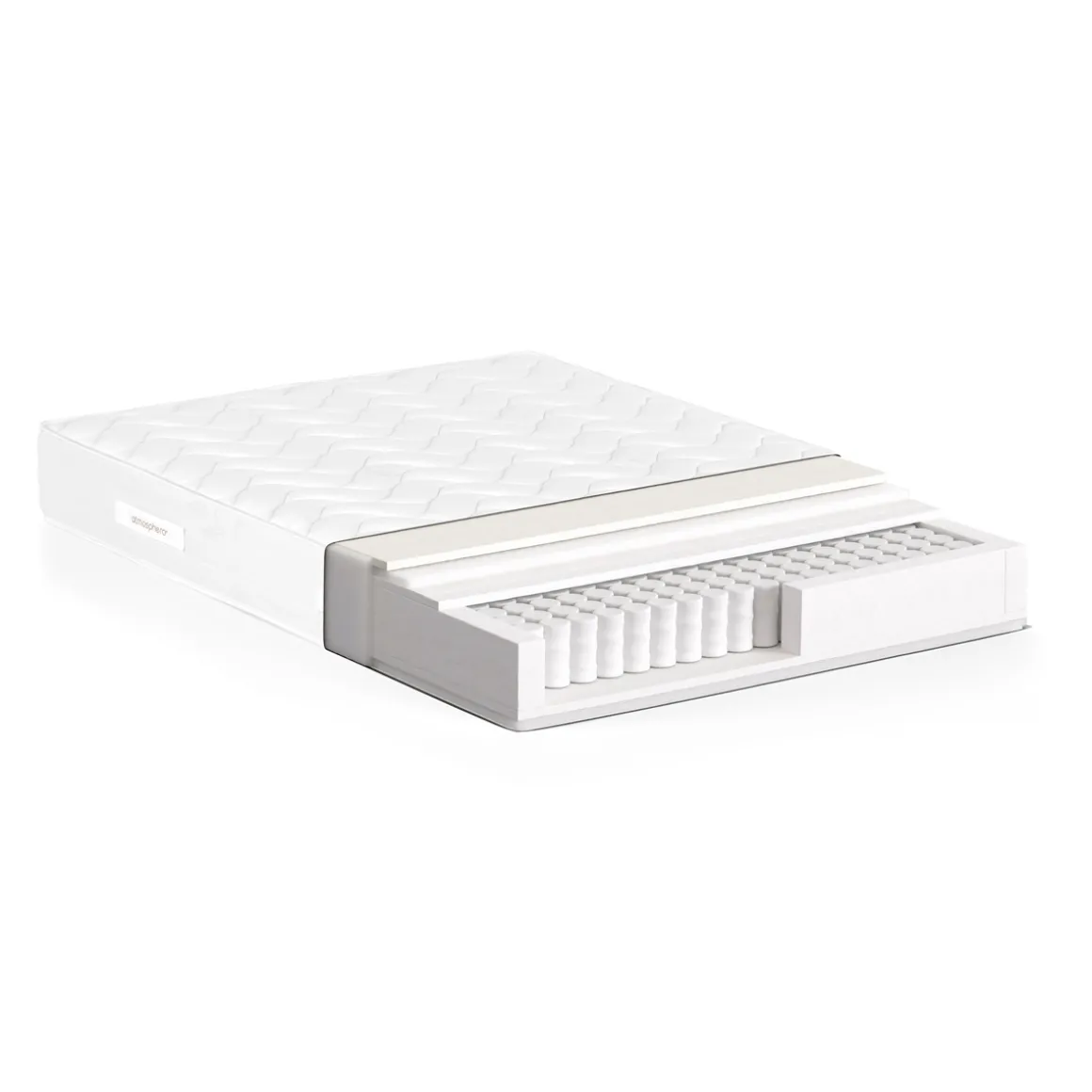 Colchón Monet 160x200cm | 100% Poliéster | 350g/m2 | Espuma de alta densidad | El colchón Monet está compuesto por un núcleo de muelles ensacados de 15cm en un cajón de espuma de alta densidad y espuma viscoelástica. El núcleo de muelles ensacados se adapta a todos los puntos de la morfología de cada persona y ofrece una respuesta individualizada a los movimientos del cuerpo durante el descanso, proporcionando así un descanso más ergonómico. La espuma viscoelástica proporciona un mayor soporte a todas las partes del cuerpo, distribuyendo el peso uniformemente y adaptándose a las curvas del cuerpo. Funda superior confeccionada en tela elástica 100% poliéster y compuesta por fibra suave antialérgica de 350g/m2. Monet contribuye a una posición ideal para dormir y ayuda a alinear correctamente la columna vertebral, permitiendo que permanezca en una posición neutra. ¡Encuentre aquí todo lo necesario para un sueño tranquilo! Descubra nuestra colección de textiles para el hogar con propuestas de ropa de cama muy confortables: edredones, fundas, colchas, sábanas, almohadas para dormir, etc. | Color: Blanco | Medidas: 23x160x200cm | Material: Poliéster, Espuma | Marca: Atmosphera | Se recomienda esperar 72h antes de usar