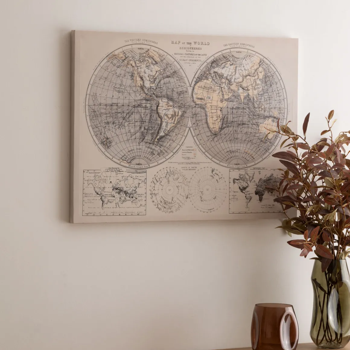 Cuadro Decorativo Mapamundi | 58x78cm | En hôma encontrarás los mejores complementos decorativos para tu hogar. ¡Descubre cuál es el que más te gusta! | Medidas: 78x58cm | Materiales: Mdf, Poliéster