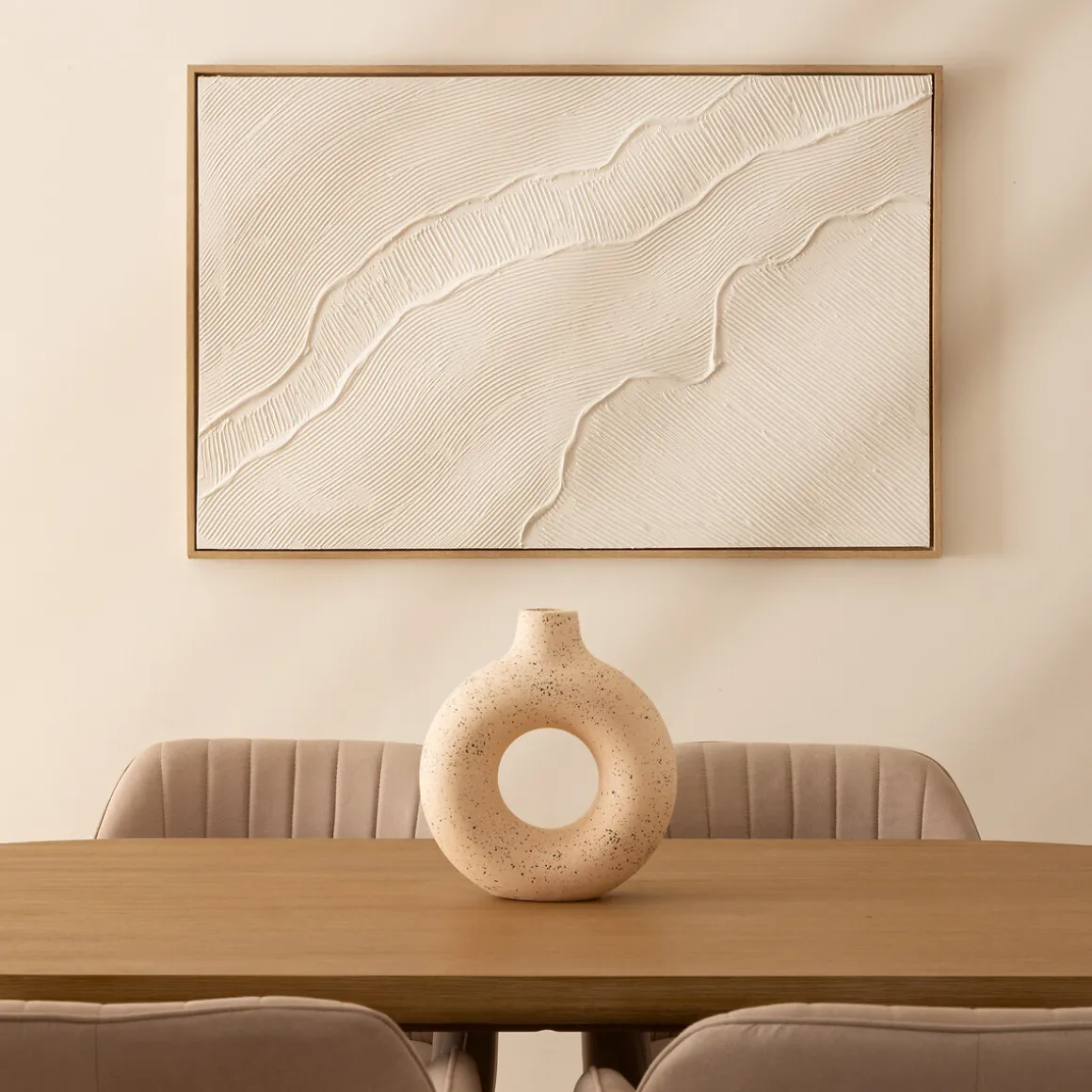 Cuadro decorativo KOHANA con relieve blanco | 75x116cm | Descubre nuestra colección de marcos y lienzos decorativos, y personaliza tus paredes a tu gusto con hôma. | Color: Blanco | Medidas: 75x116cm | Material: Poliéster y MDF | Marca: Atmosphera