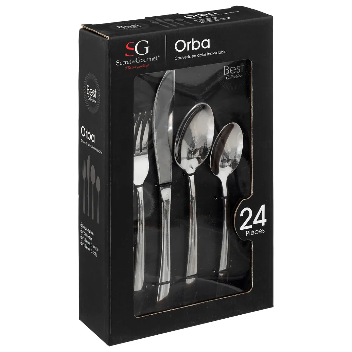 Cubertería ORBA con 24 pzas de acero inoxidable | Incluye tenedor; cuchillo; cuchara sopera y cuchara de postre | Apto para Lavavajillas | Todo lo que tu mesa necesita está en homastores.com, echa un vistazo a nuestra colección de vajillas, vasos, cubiertos, posavasos, soportes, piezas para servir, etc. ¡Sirve con Happy Home Living, y todo sabrá mucho mejor! | Color: Plateado | Medidas: 27x17x6cm | Material: Acero Inoxidable | Marca: Secret D’Gourmet