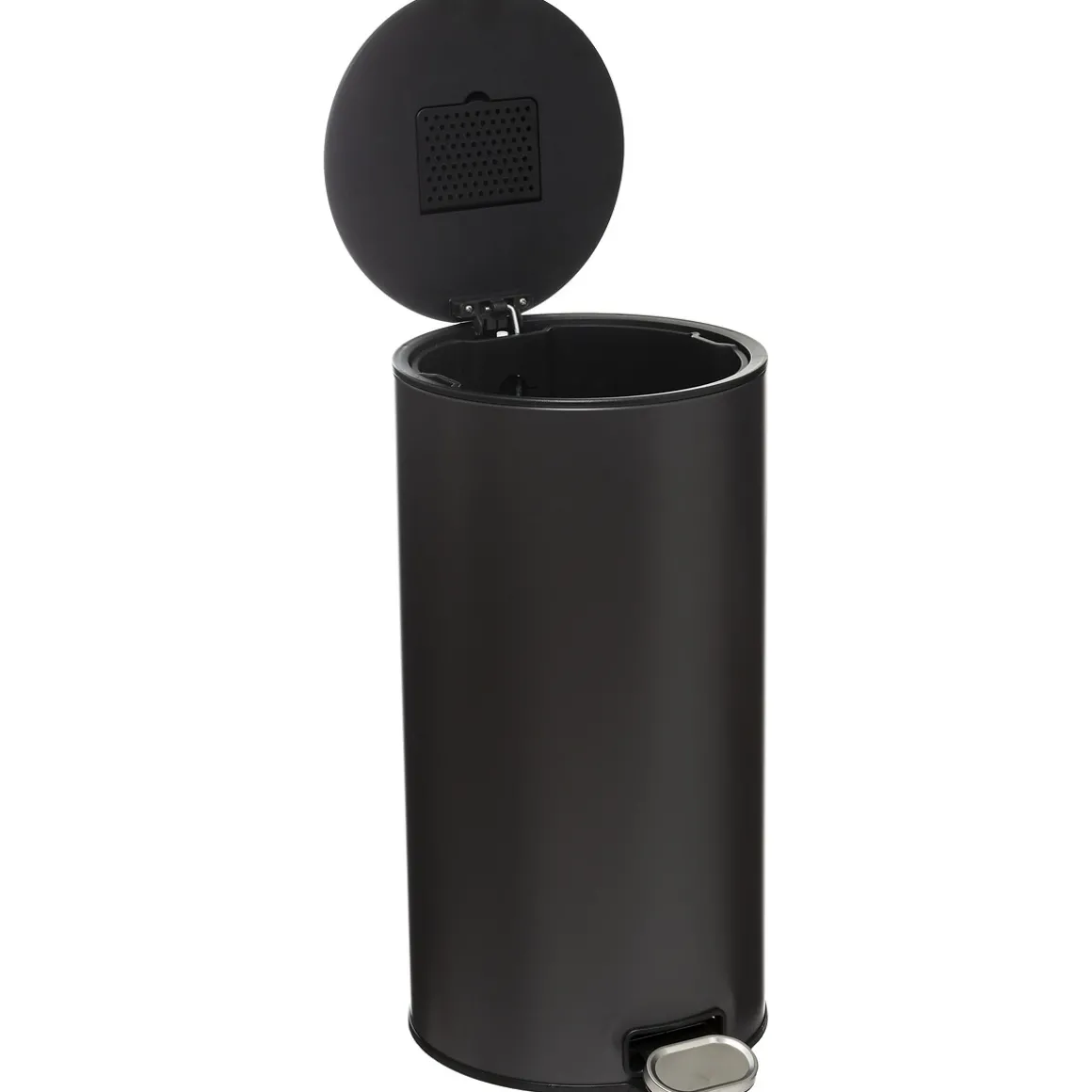 Cubo de basura DELTA de metal 30l | 62×31.5×31.5cm | Equipado con la función de cierre suave para un cierre suave y silencioso de la tapa. El filtro de carbón activo incluido neutraliza los malos olores. Fácil limpieza gracias a su cubo extraíble y sistema de enganche para la bolsa de basura. Tapa extraplana, no daña las paredes y permanece abierta a 90º. Pedal sólido en metal reforzado para mayor comodidad de uso | Color: Negro | Medidas: 62×31.5×31.5cm | Material: Metal | Capacidad: 30L | Marca: 5Five