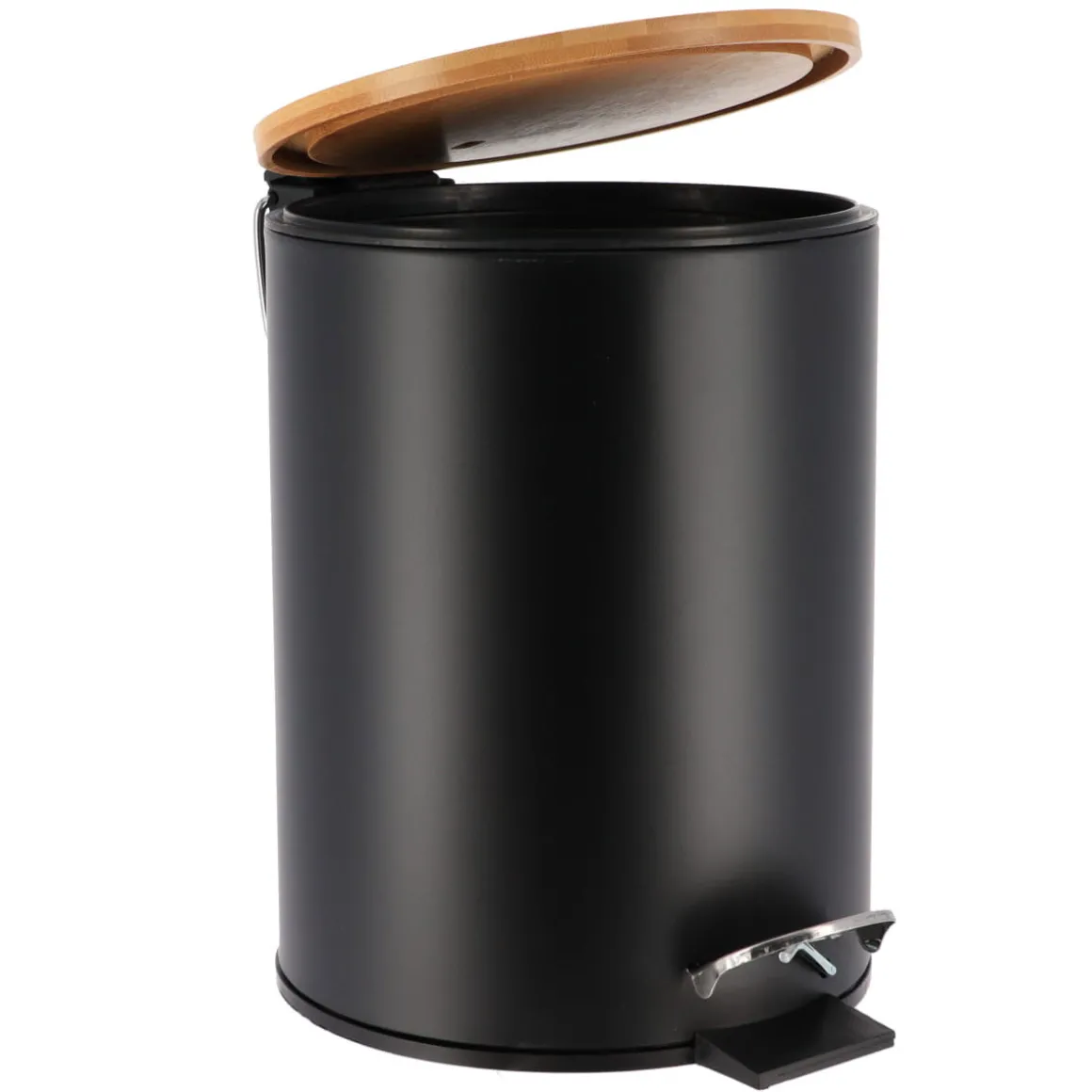 Cubo De Basura Negro Metal y Bambú Cierre Suave 2.5L | Los accesorios de baño y organización son esenciales para las rutinas más personales, proporcionando todo el bienestar que usted merece. Conozca nuestra colección de accesorios de baño | Color: Negro, Natural | Medidas: 23×20.5x17cm | Material: Metal, Bambú | Capacidad: 2.5L