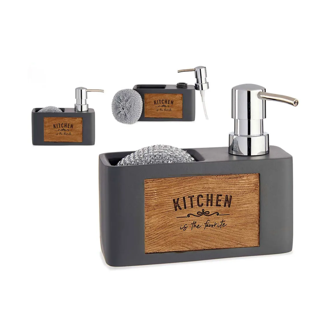 Dosificador Detergente Con Porta Estropajo | 15x6x14cm | La funcionalidad en la cocina es esencial y comienza con las soluciones de almacenamiento para la cocina. Desde el carrito multiusos, al botellero o los cubos de basura y reciclaje, encuéntralo todo en homa.es | Color: Gris | Medidas: 15x6x14cm | Material: Plástico, Madera