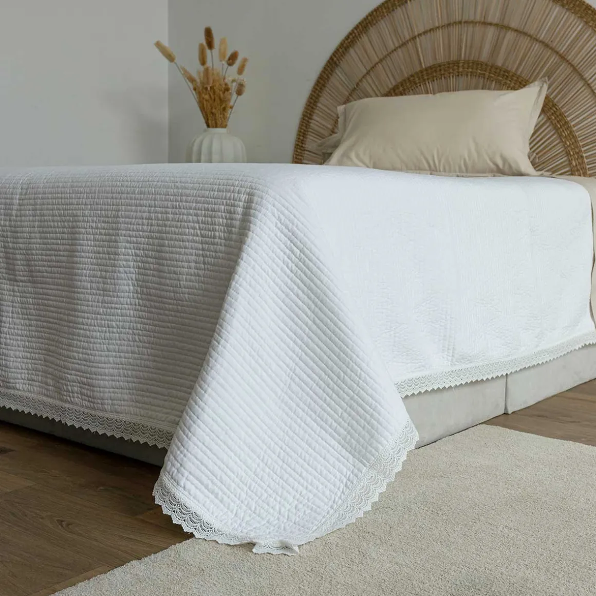 Edredón blanco con volante de encaje 220x240cm