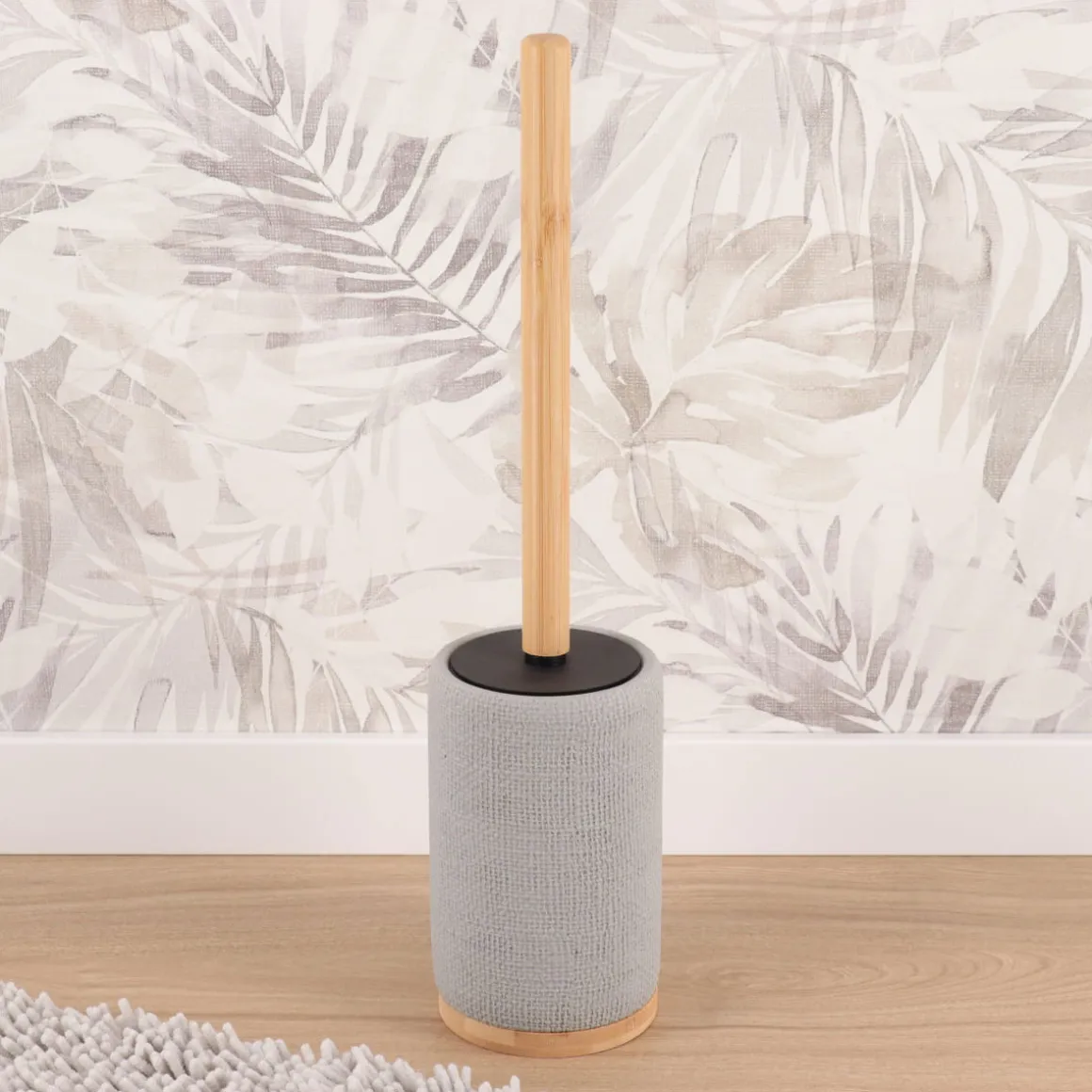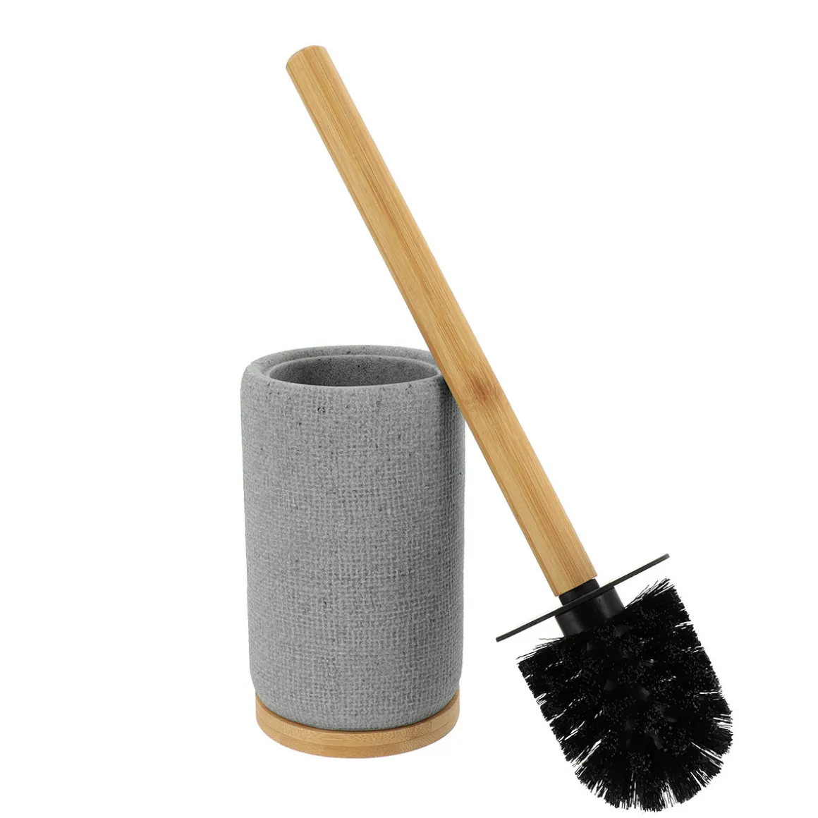 Escobilla Efecto Red Gris | Los accesorios de Baño y de organización son esenciales para que las rutinas más personales te proporcionen todo el bienestar que mereces. Conoce nuestra nueva colección de accesorios de baño | Color: Gris | Medidas: 42.5×9.5×9.5cm | Material: Poliresina, Bambú