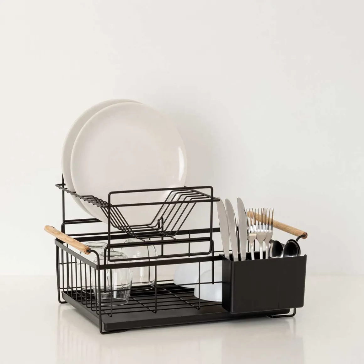 Escurreplatos BlackWood Negro | Cubertero compartimentado incluido. Bandeja extraíble. Estante extraíble para platos. | Número de platos: 9, número de vasos de agua: 15; cubertero: 1 | ¿Sabías que tu cocina puede ser el lugar más feliz del mundo? Descubre nuestra gama de utensilios para una cocina llena de Happy Home Living. ¡Cocinar con los utensilios adecuados es mucho más fácil! | Color: Negro | Medidas: 28.3x29x48cm | Material: Hierro