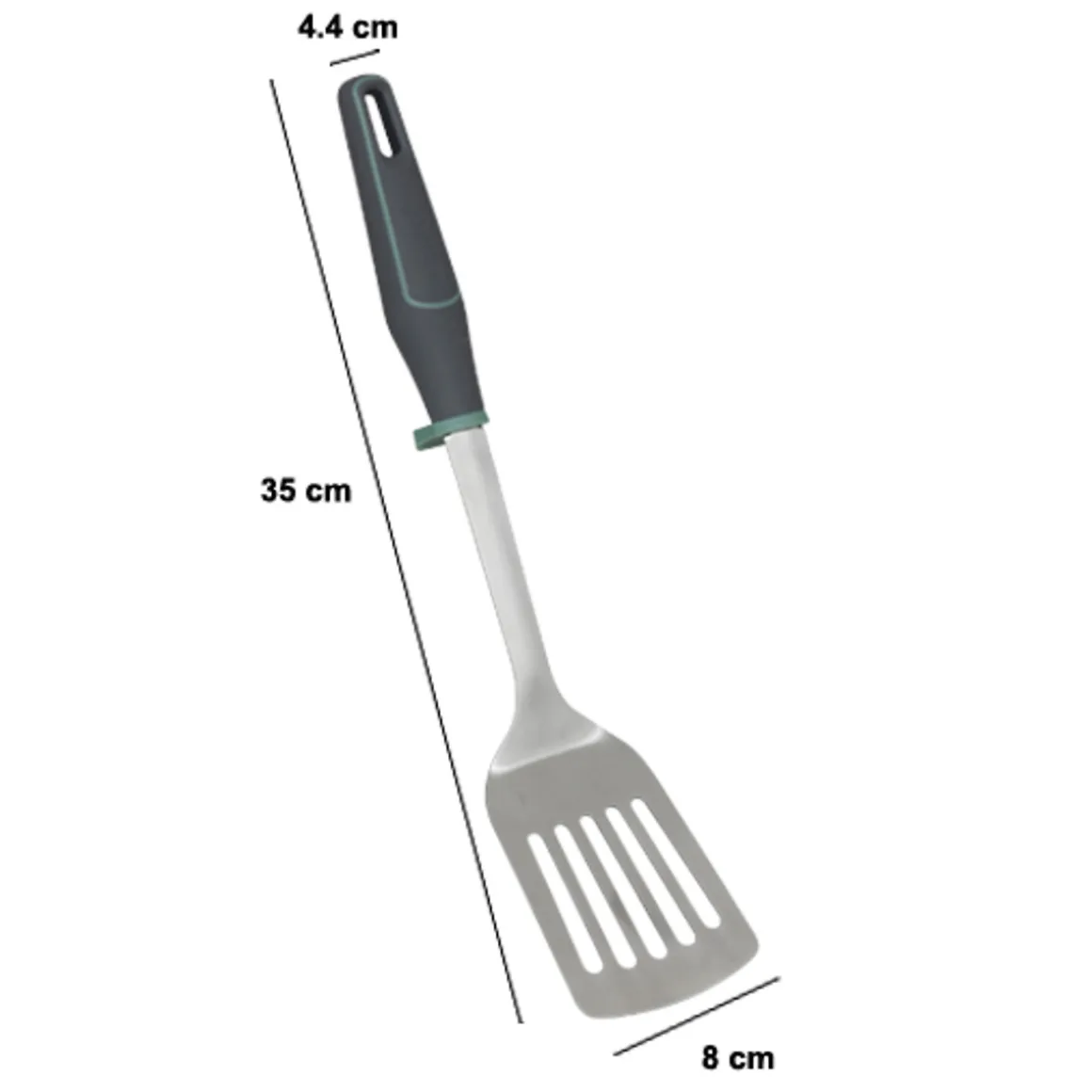 Espátula NÉO | ¿Sabías que tu cocina puede ser el lugar más feliz del mundo? Descubre nuestra gama de utensilios para una cocina llena de Happy Home Living. ¡Cocinar con los utensilios adecuados es mucho más fácil! | Color: Gris | Medidas: 35cm | Material: Acero inoxidable, Polipropileno | Marca: 5Five