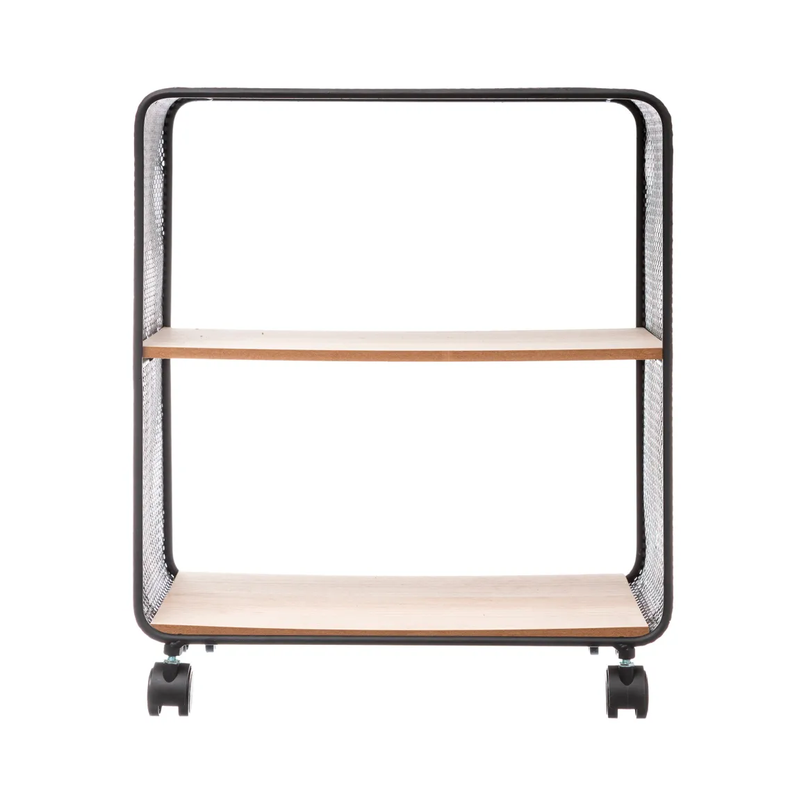 Estantería Con 2 Baldas Y Ruedas | Conoce este y más artículos que tenemos disponibles para tu vestidor. ¡Ordenar y organizar tus armarios y vestidores nunca ha sido tan fácil! Descubre la gama de almacenaje hôma | Color: Marrón claro, Negro | Medidas: 52x28x43.5cm | Material: Madera, Metal | Marca: 5Five