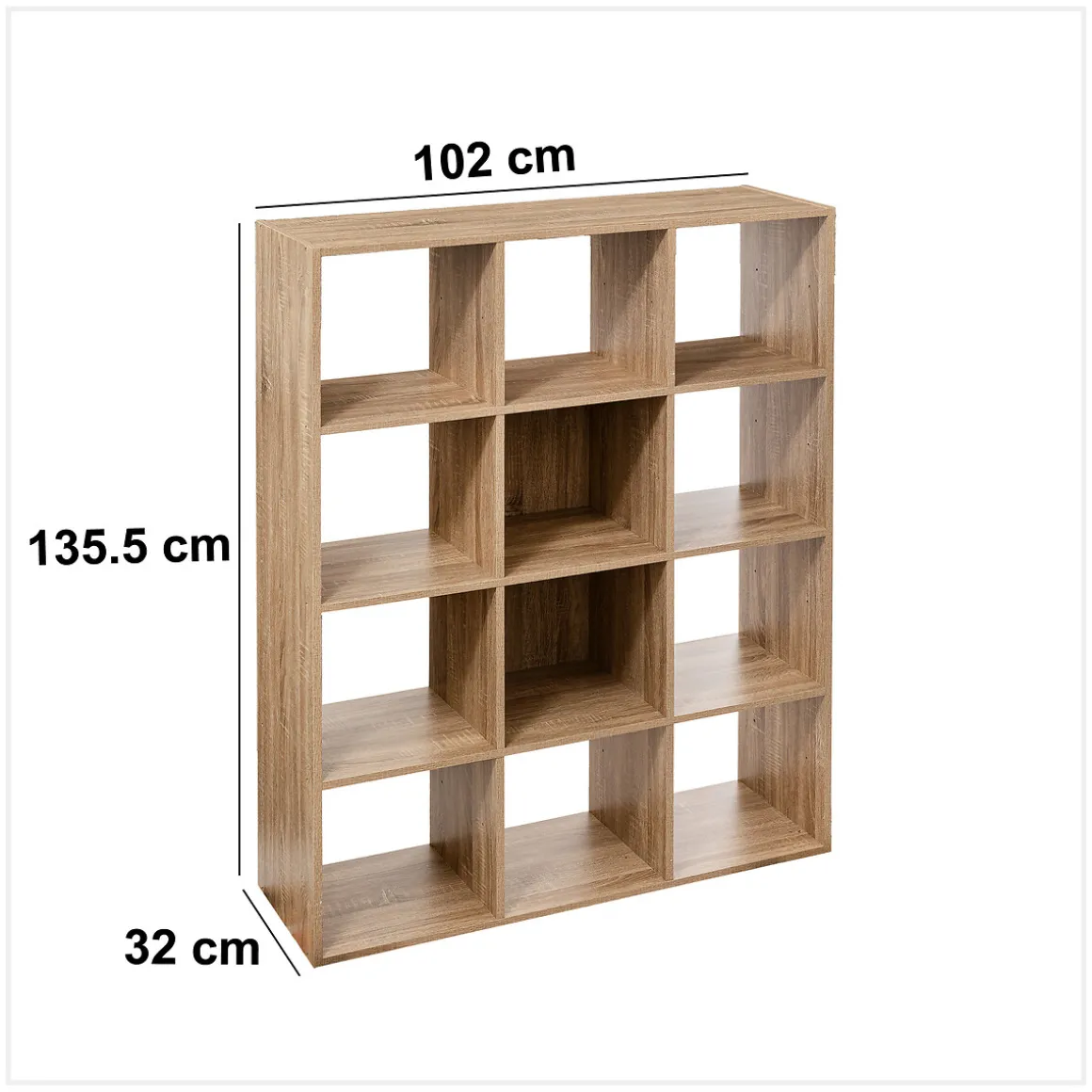 Estantería Modular 12 Cubos | Conoce este y más artículos que tenemos disponibles para tu vestidor. ¡Ordenar y organizar tus armarios y vestidores nunca ha sido tan fácil! Descubre la gama de almacenaje hôma | Color: Natural | Medidas: 100.8x32x134cm | Material: Aglomerado