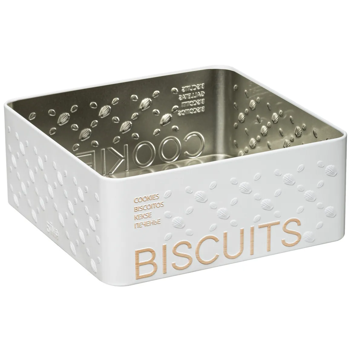 Galletero metálico 500g | 8×19.5×19.5cm | ¿Sabías que tu cocina puede ser el lugar más feliz del mundo? Descubre nuestra gama de utensilios para una cocina llena de Happy Home Living. ¡Cocinar con los utensilios adecuados es mucho más fácil! | Color: Blanco | Medidas: 8×19.5×19.5cm | Material: Hierro, Plata | Capacidad: 500g | Marca: 5Five