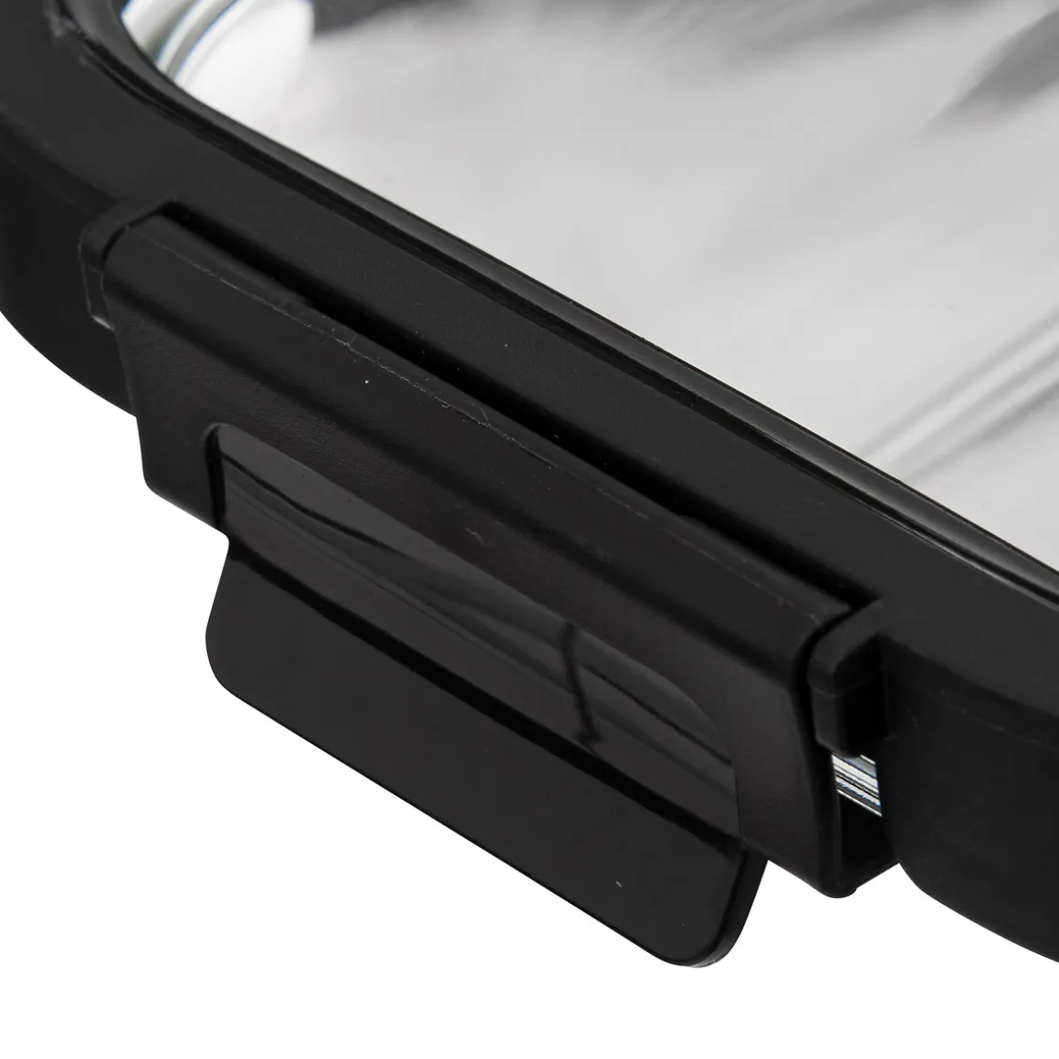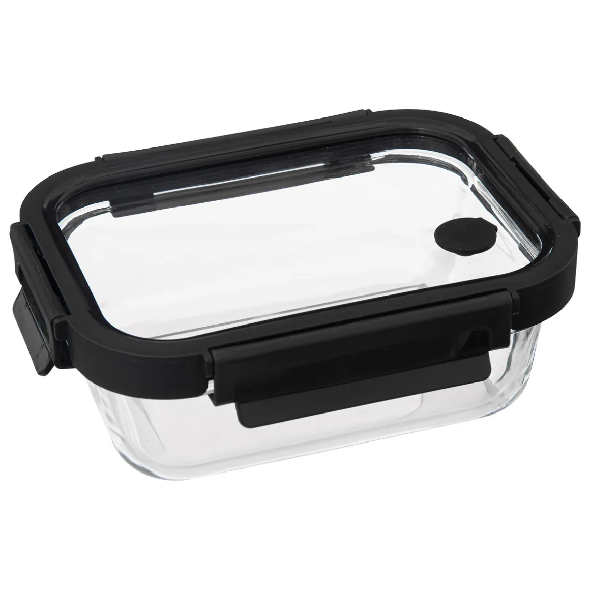 Hermético Rectangular Vidrio 0.5L | Caja hermética de vidrio borosilicato de 0.5L con tapa de vidrio templado. Tapa con cierre hermético de clip. Válvula de ventilación ideal para su uso en microondas. ¿Sabías que tu cocina puede ser el lugar más feliz del mundo? Descubre nuestra gama de utensilios para una cocina llena de Happy Home Living. ¡Cocinar con los utensilios adecuados es mucho más fácil! | Color: Negro, Transparente | Medidas: 6.9×14.5x19cm | Material: Vidrio | Capacidad: 0.5L | Marca: 5Five