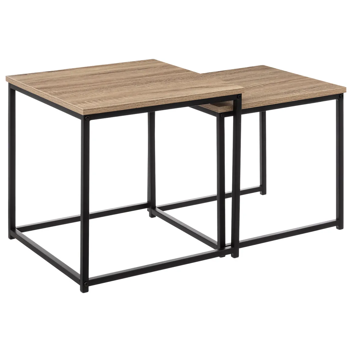 Juego 2 Mesas Auxiliares Aliaj | 45x45x45cm/40x40x40cm | Conoce los muebles auxiliares que tenemos para ti. El mobiliario homa fue pensado para proporcionarte un Home Happy Living. Los mejores artículos de decoración están aquí | Color: Marrón, Negro | Medidas: 45x45x45cm/40x40x40cm | Material: MDF, Metal