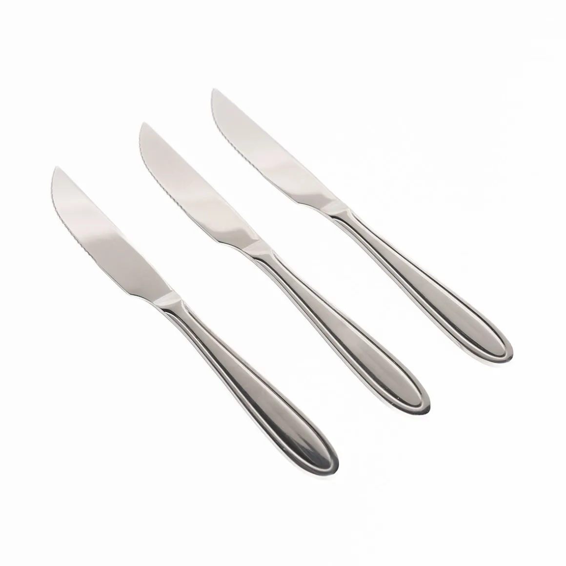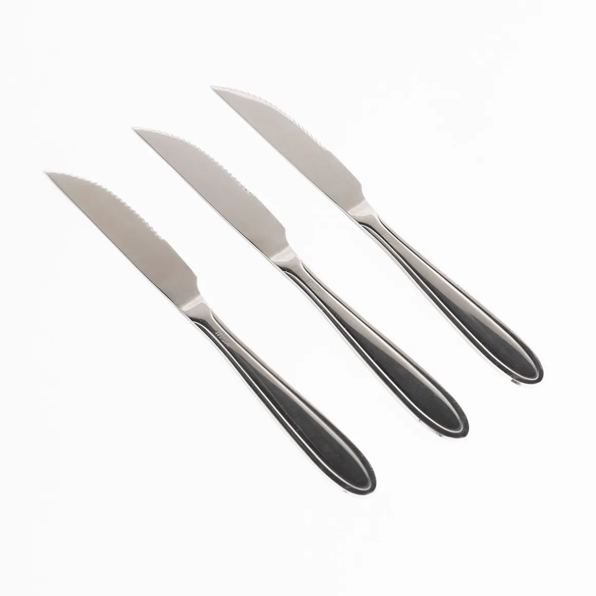 Juego 3 Cuchillos Chuleteros | Todo lo que tu mesa necesita está en homa.es, echa un vistazo a nuestra colección de vajillas, vasos, cubiertos, posavasos, soportes, etc. ¡Sirve con Happy Home Living, y todo sabrá mucho mejor! | Color: Dorado | Medidas: 21cm | Material: Acero Inoxidable