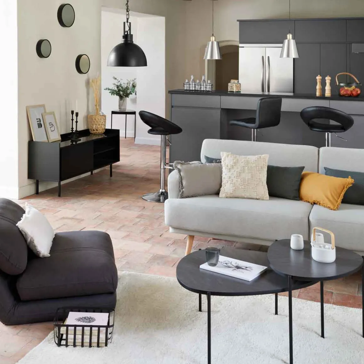 Juego 3 Espejos De Pared Mona | Descubre este y otros espejos decorativos hôma para tu casa. | Color: Negro | Medidas: 22/26/30cm | Material: Metal, Vidrio | Marca: Atmosphera