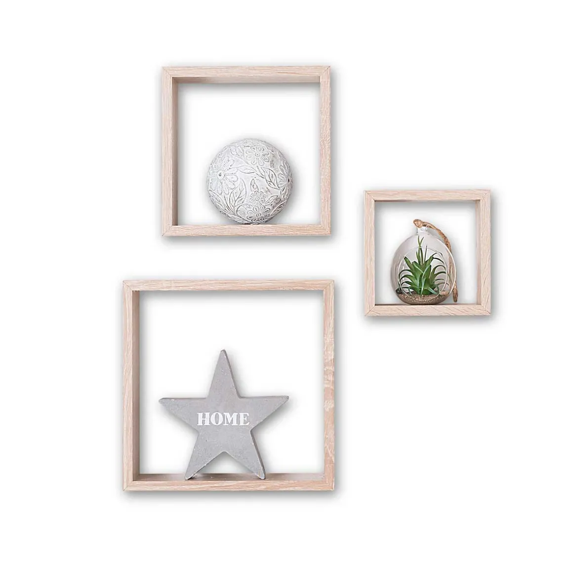 Juego De 3 Estantes Cubo Roble Natural 15/20/25cm | Descubre este y más artículos que tenemos disponibles para tu armario. Ordenar y organizar tus armarios y vestidores nunca fue tan fácil. Descubre la gama de almacenaje hôma | Medidas: 15x9x15cm, 20x9x20cm, 25x9x25cm | Material: Mdf | Color: Marrón | Marca: 5Five