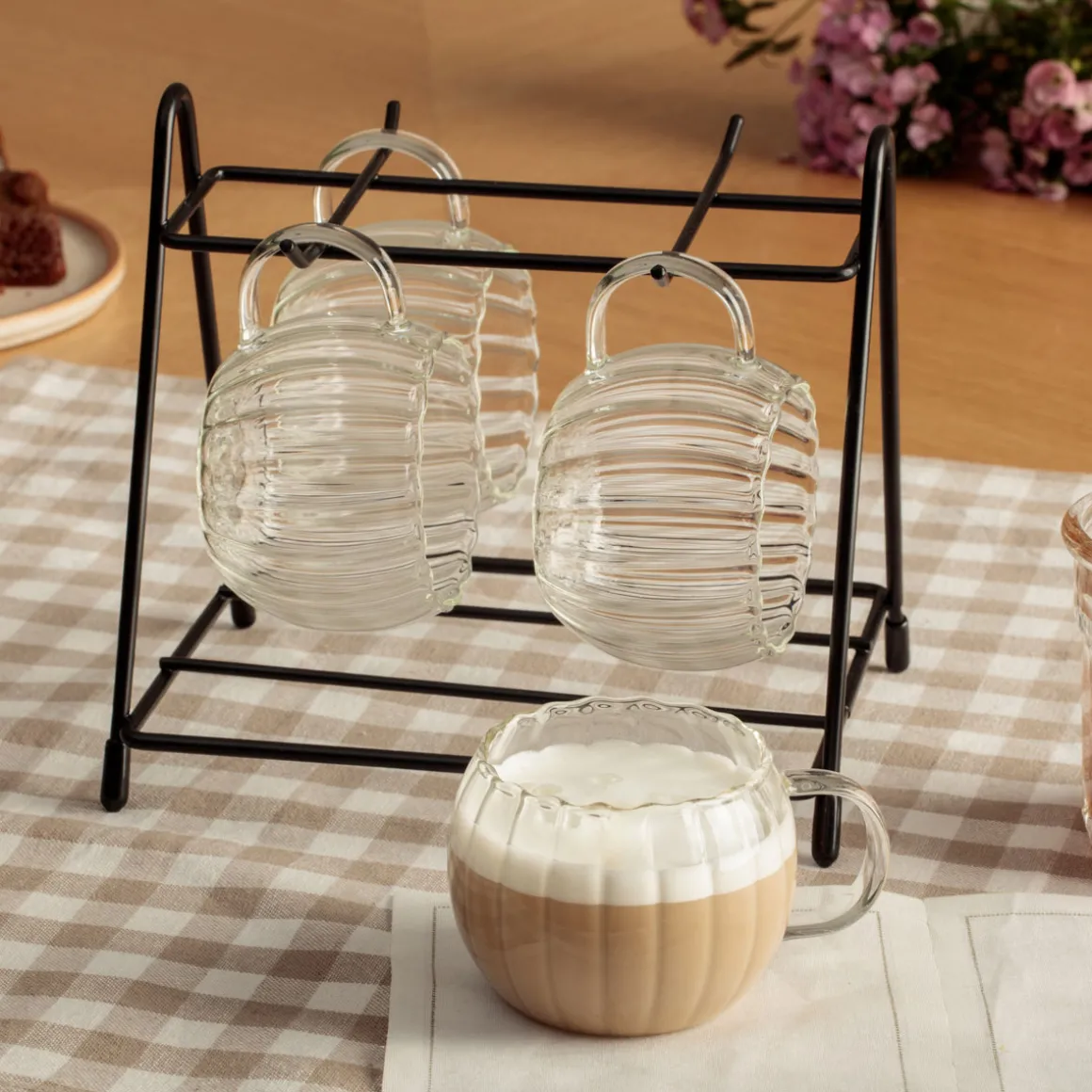 Juego de 4 tazas con soporte 18cl