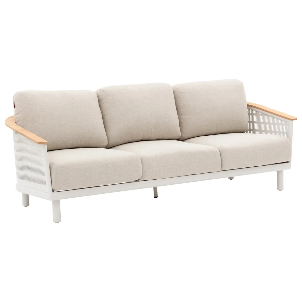 Juego de jardín OLIMIO de aluminio | 5 plazas | Estructura tratada con epoxi antioxidante y teca FSC. Debe mantenerse de acuerdo con las recomendaciones de las instrucciones. Fundas de cojines desmontables para facilitar la limpieza. Tejido hidrófugo que permite que el agua resbale sin penetrar en el material. Producto tratado contra la decoloración. Pies ajustables para compensar las irregularidades del terreno y proporcionar una mayor estabilidad | Color: Beige | Material: Aluminio| Marca: Hespéride