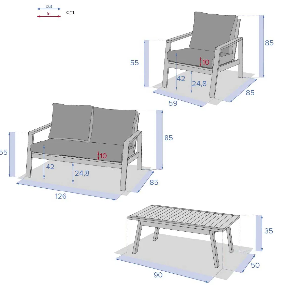Juego de jardín TIWI de madera acacia
