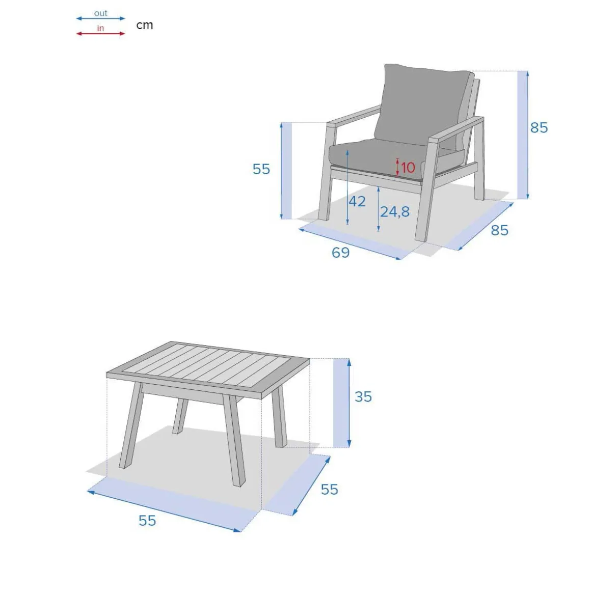 Juego de jardín TIWI de madera acacia