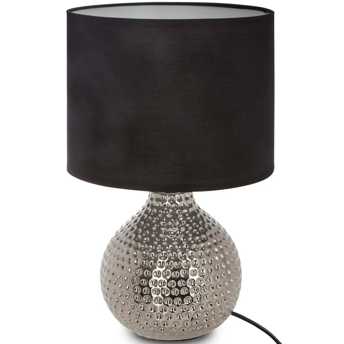 Lámpara De Mesa Gota Cerámica | 38x24cm | Bombilla No Incluida | Portalámpara: E14 | Potencia Máxima: 40W | Descubre este y otros artículos de iluminación de hôma para iluminar y decorar tu hogar | Color: Negro, Plateado | Medidas: 38x24x24cm | Material: Cerámica, Poliéster, Algodón | Marca: Atmosphera