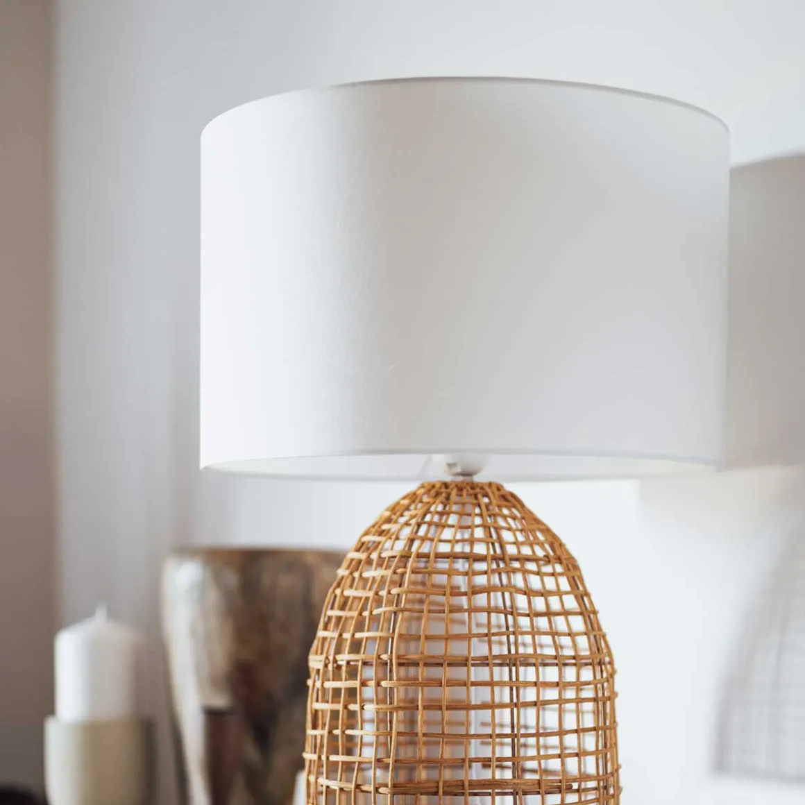Lámpara De Mesa Karla De Ratán 55cm | Bombilla no incluida | Portalámpara: E27 | Potencia máxima: 25W | Longitud del cable: 150cm | Descubre este y otros artículos de iluminación de hôma para iluminar y decorar tu hogar | Color: Beige, Blanco | Medidas: 55x32x32cm | Material: Algodón, Ratán, Metal, Poliéster | Marca: Atmosphera