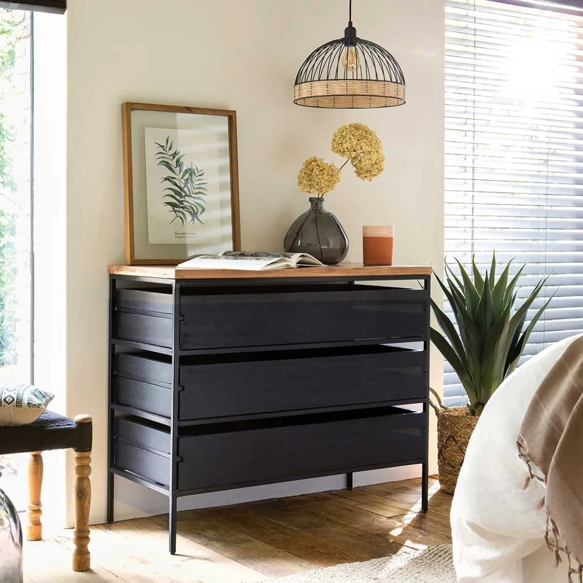 Lámpara De Techo De Ratán Negra | Bombilla no incluida | Longitud del cable: 80cm | Altura ajustable | Portalámpara: E27 | Potencia máxima: 40W | Clase: 2 | Descubre este y otros artículos de iluminación en hôma para iluminar y decorar tu hogar | Color: Negro | Medidas: 35x25cm | Material: Metal, Cuero, Pvc y Ratán | Marca: Atmosphera