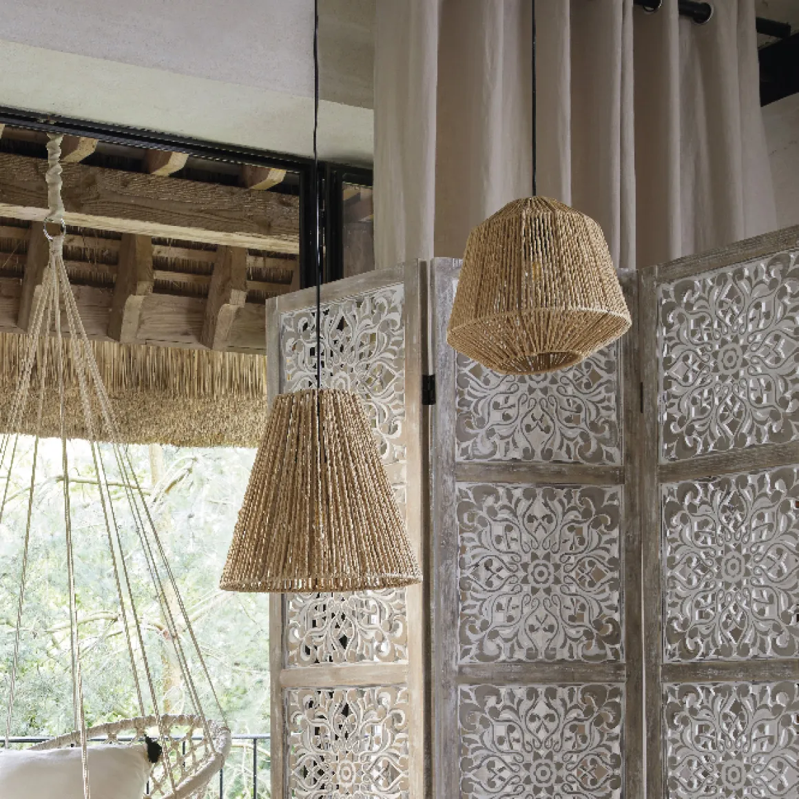 Lámpara De Techo Etnic Giada | 27x30cm | Longitud del cable: 95cm | Bombilla no incluida | E27, 40W | Descubre este y otros artículos de iluminación en hôma para iluminar y decorar tu hogar | Color: Beige | Medidas: 27x30x30cm | Material: Metal, Cuerda | Colección: Étnico | Marca: Atmosphera