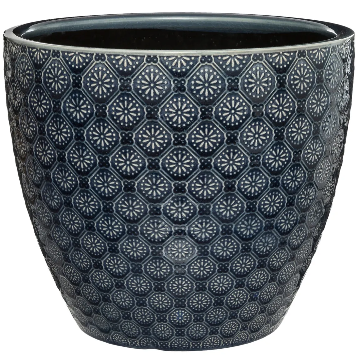 Maceta De Cerámica Decorada Flor Azul | 23x25cm | En hôma encontrarás los mejores complementos decorativos para tu hogar | Color: Azul Oscuro | Medidas: 23x25x25cm | Material: Cerámica | Marca: Atmosphera