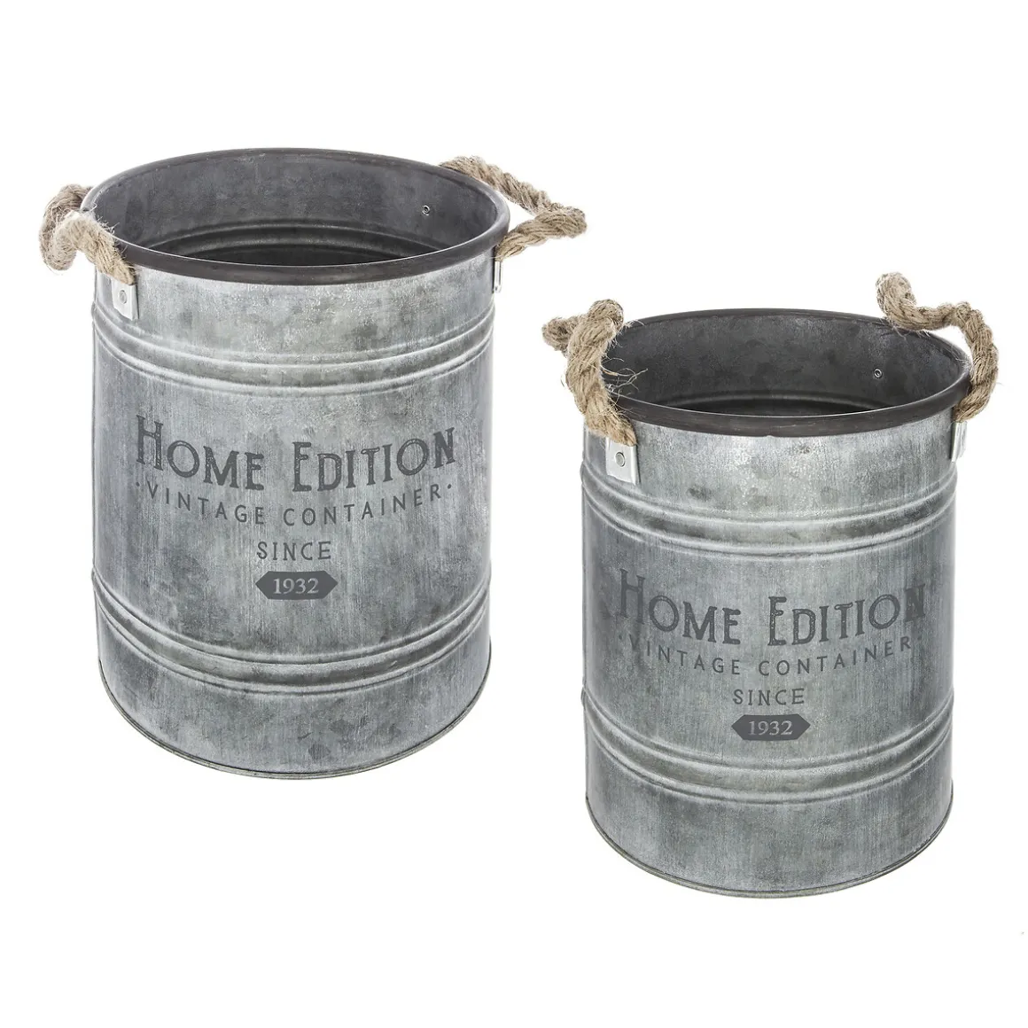 Maceta Redonda Home Edition Gris De Zinc 24.3cm | En hôma encontrarás los mejores complementos decorativos para tu hogar | Color: Gris | Medidas: 24.3×22.5×22.5cm | Material: Zinc, Yute | Marca: Atmosphera