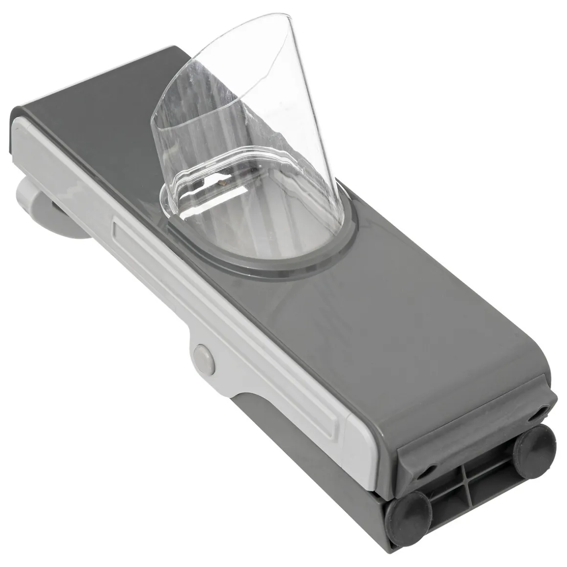 Mandolina Multicorte Gris | Mango con resorte para maximizar la fuerza de corte. Mecanismo vertical combinado con cuchillas ultra afiladas que cortan fácilmente todos los alimentos. Sistema de cambio de cuchillas mediante pulsador para evitar accidentes. 3 cuchillas que permiten varios cortes con diferentes grosores. ¿Sabías que tu cocina puede ser el lugar más feliz del mundo? Descubre nuestra gama de utensilios para una cocina llena de Happy Home Living. ¡Cocinar con los utensilios adecuados es mucho más fácil! | Color: Gris | Medidas: 15×26.5×9.5cm | Material: ABS | Marca: 5Five