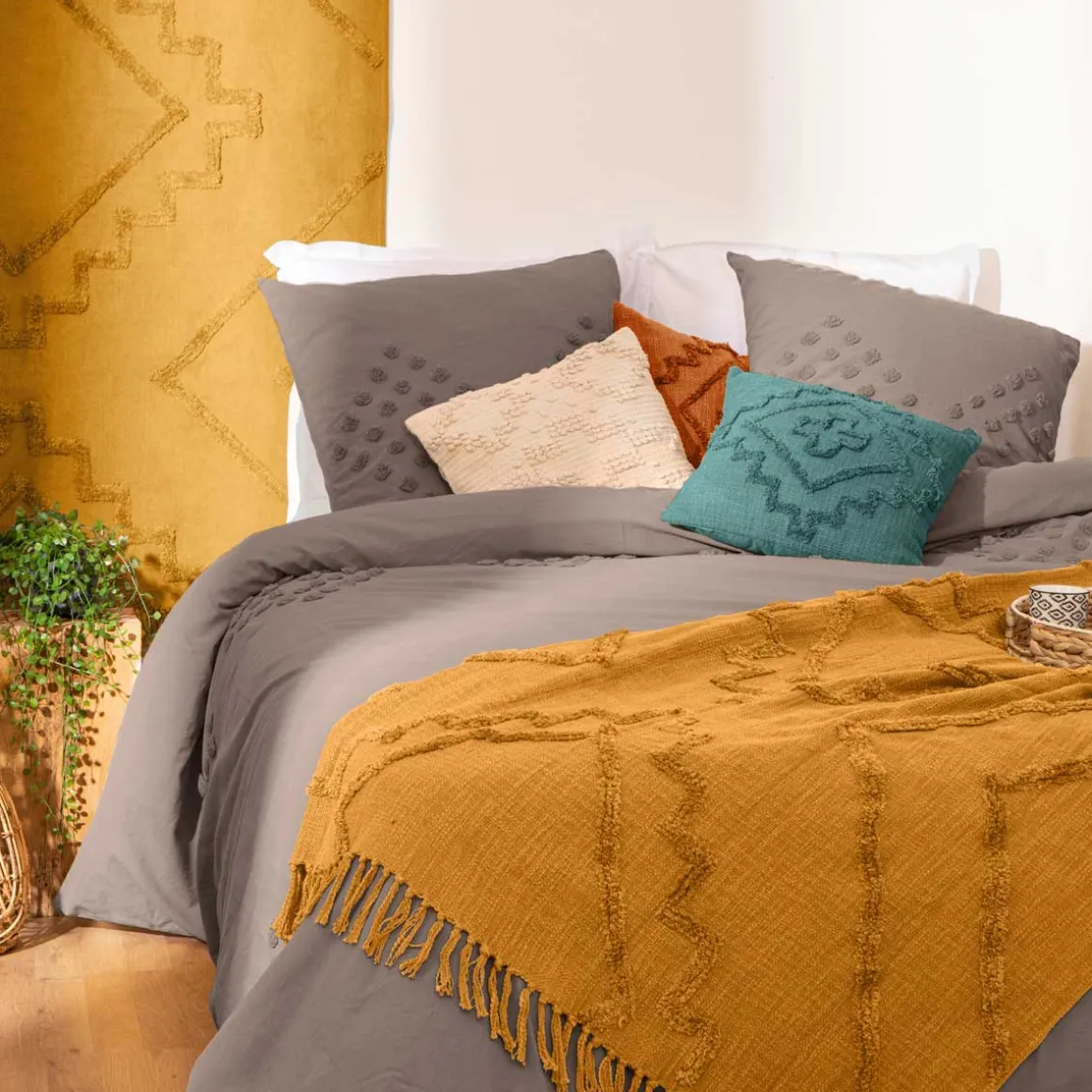 Manta Inca Ocre 130x180cm | La colección textil hôma reúne propuestas únicas para personalizar tu hogar. Desde cojines decorativos y fundas de cojín hasta las mantas más confortables, ¡vive en tu hogar con toda comodidad! | Color: Ocre | Medidas: 130x180cm | Material: Algodón | Marca: Atmosphera