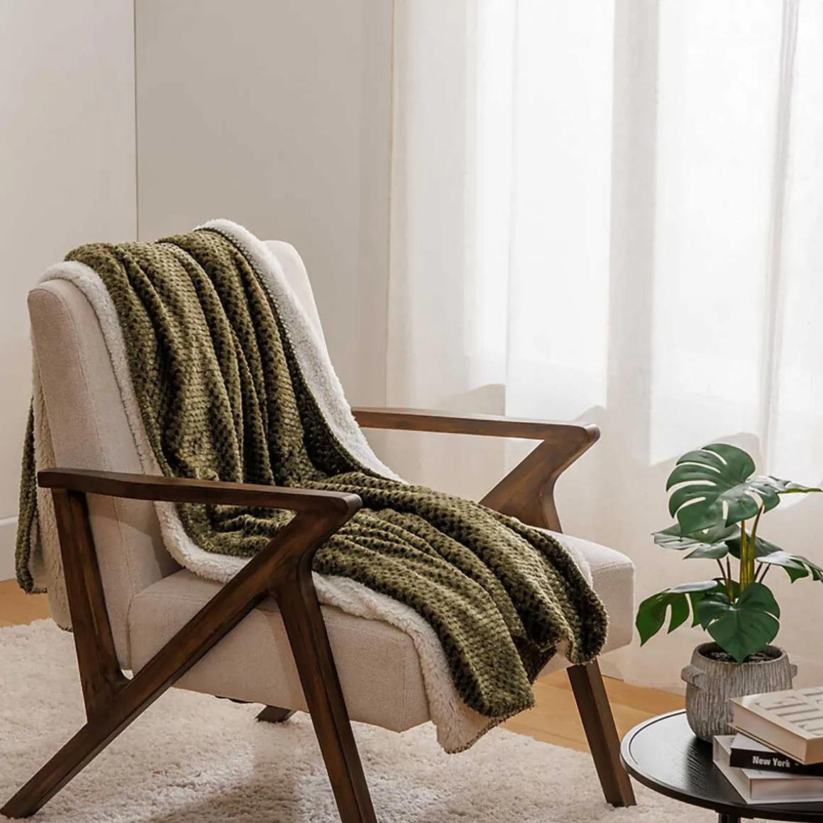 Manta LYNO verde 130x170cm | La colección textil hôma reúne propuestas únicas para personalizar tu casa. Desde cojines decorativos y fundas de cojín hasta las mantas más confortables, ¡ Vive en tu hogar con comodidad ! | Color: Verde | Medidas: 130x170cm | Material: Poliéster | Marca: Atmosphera