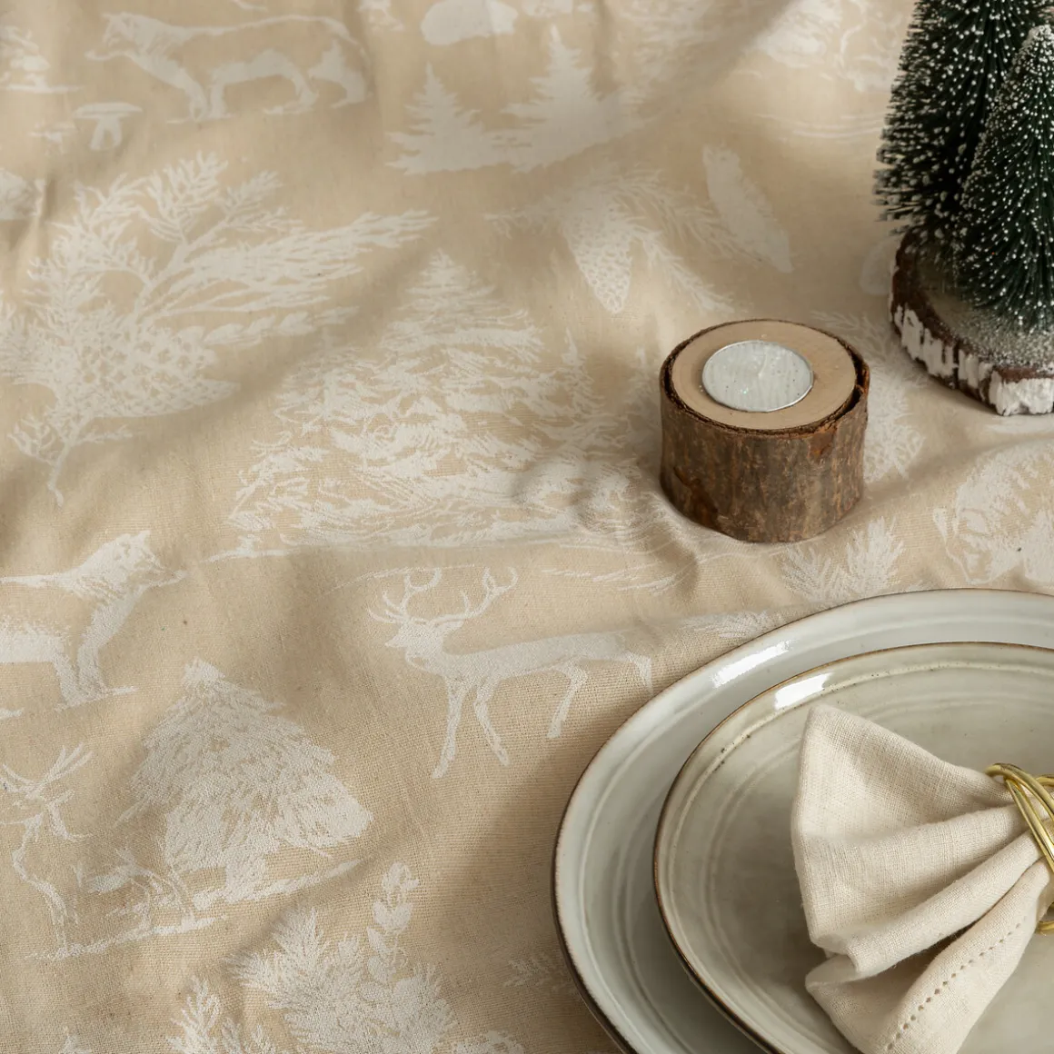 Mantel con animales 140x360cm | Viste tu mesa y cocina con nuestra colección de textiles de cocina. Manteles, servilletas para servir sin olvidar la funcionalidad de los delantales y paños de cocina. ¡Cada detalle es fundamental! | Color: Beige | Medidas: 1x140x360cm | Material: Algodón y poliéster