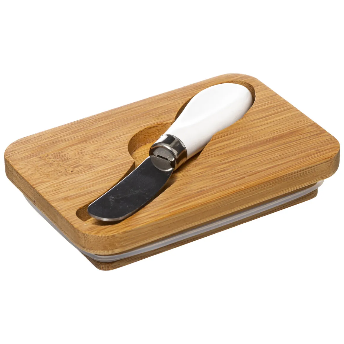 Mantequera De Cerámica Con Tapa De Bambú Y Cuchillo | ¿Sabías que tu cocina puede ser el lugar más feliz del mundo? Echa un vistazo a nuestra gama de utensilios para una cocina llena de Happy Home Living. ¡Cocinar con los utensilios adecuados es mucho más fácil! | Color: Marrón claro/Blanco | Medidas: 9×13.5x9cm | Material: Cerámica, Bambú | Colección: Seramik