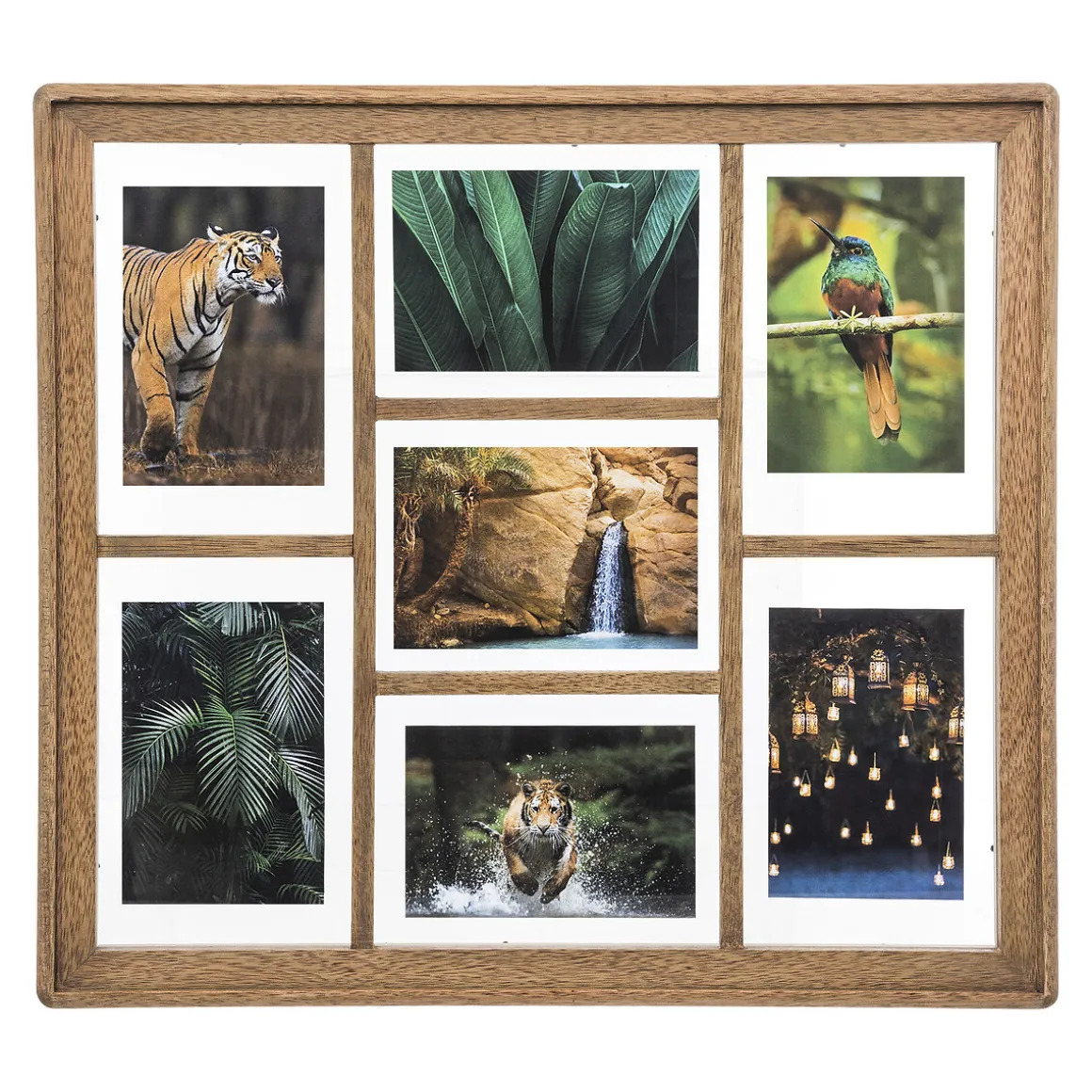 Marco De Fotos Elliot De Madera Para 7 Fotos | Descubre este y otros marcos de fotos hôma que tenemos para ti. Recuerda y decora tu casa con tus mejores momentos | Color: Beige Oscuro | Medidas: 52.1×2.7×47.5cm | Capacidad: 7 Fotos 10x15cm | Material: Madera de Mango, Mdf y Vidrio | Marca: Atmosphera