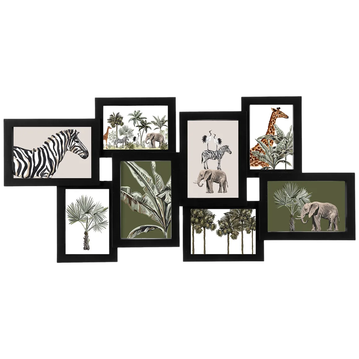 Marco De Fotos Múltiple Para 8 Fotos 65x32cm | Descubre este y otros marcos de fotos hôma que tenemos para ti. Recuerda y decora tu casa con tus mejores momentos | Medidas: 65x32cm | Material: Plástico | Color: Negro