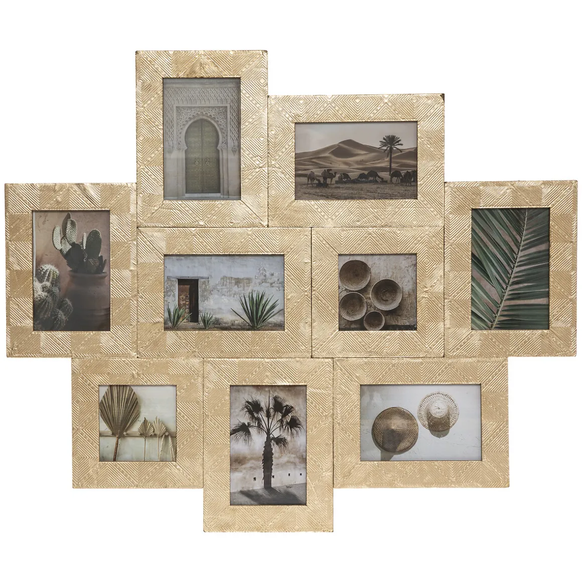 Marco De Fotos Múltiple Para 9 Fotos | 57×1.5x67cm | 10x10cm, 10x15cm | Descubre este y otros marcos de fotos hôma que tenemos para ti. Recuerda y decora tu casa con tus mejores momentos | Color: Beige | Medidas: 57×1.5x67cm | Material: Mdf, Hierro, Vidrio | Marca: Atmosphera