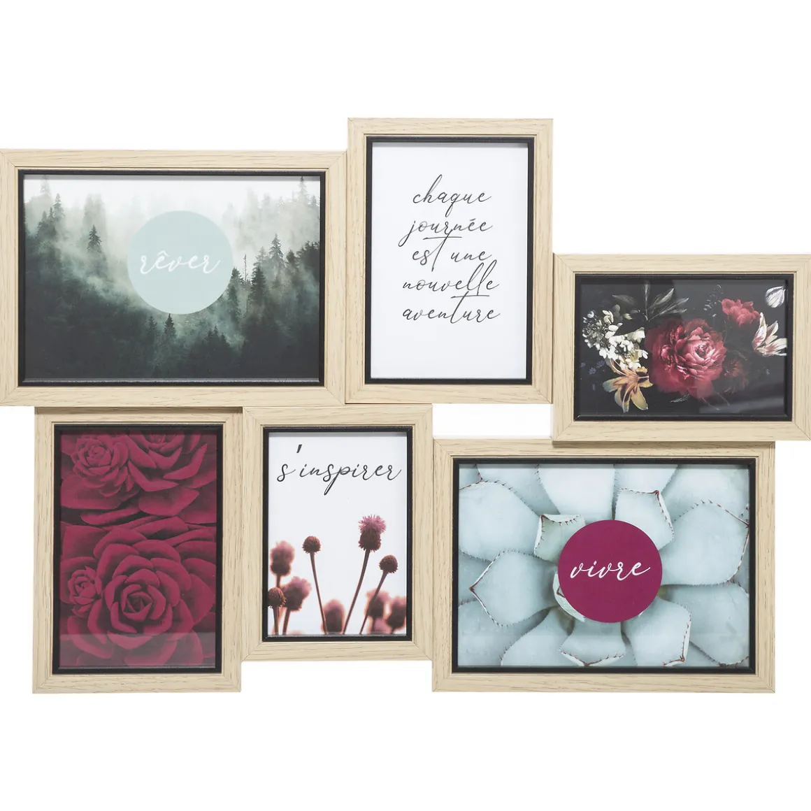 Marco Múltiple Para 6 Fotos | 47.5×2.7×34.2cm | Para Colgar | Medidas de la Foto: 2x9x13 / 2x10x15 / 2x13x18cm | Descubre este y otros marcos de fotos hôma que tenemos para ti. Recuerda y decora tu casa con tus mejores momentos | Color: Beige Claro | Medidas: 47.5×2.7×34.2cm | Material: Mdf, Vidrio y papel | Marca: Atmosphera