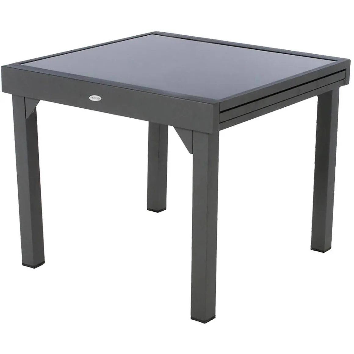 Mesa extensible PIAZZA gris graphite 90-180cm | Hasta 8 Sillas | Esta mesa de jardín te ofrecerá un gran momento con tu familia o amigos | Mesa de jardín de aluminio grafito con tapa de vidrio templado | Gracias a su extensión en forma de mariposa, esta mesa rectangular puede acoger hasta 8 personas | Color: Gris Grafito | Medidas: 75x90x90-180cm | Material: Aluminio, Vidrio templado | Colección: Piazza | Marca: Hespéride