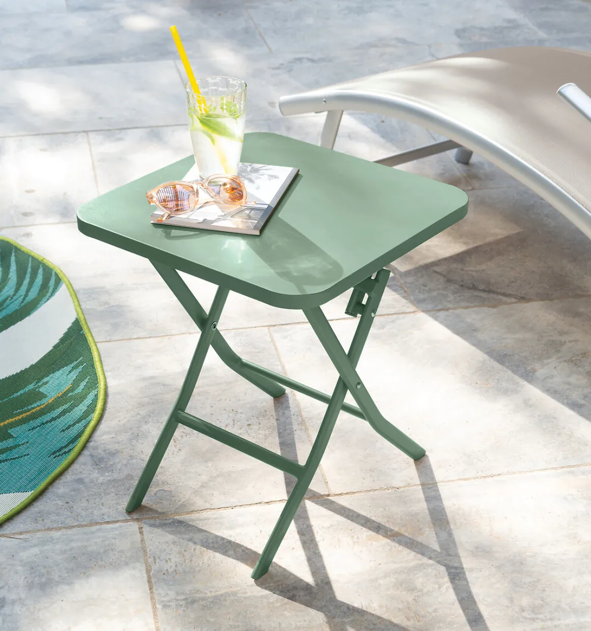 Mesa plegable cuadrada GREENSBORO verde | 45x40x40cm | Estructura tratada con galvanoplastia anticorrosión | Estructura con tratamiento epoxi antioxidante | Producto tratado contra la decoloración | Plegable, fácil de guardar y perfecta para espacios reducidos