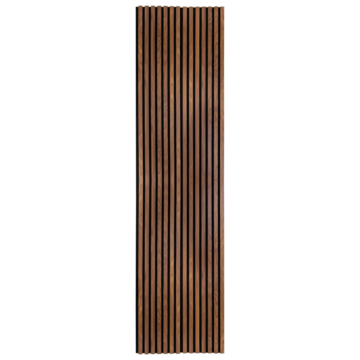 Panel decorativo COLVA marrón oscuro de mdf 240cm | Modo de colocación: ver foto | MDF con chapa de papel texturizado efecto nogal con fieltro negro / grosor total 2,1cm / insonorización para corregir el eco ambiental | Descubre nuestra colección de marcos y lienzos decorativos, y personaliza tus paredes a tu gusto con hôma | Color: Marrón oscuro | Medidas: 240×2,1×60,5cm | Material: MDF y PET | Marca: Atmosphera