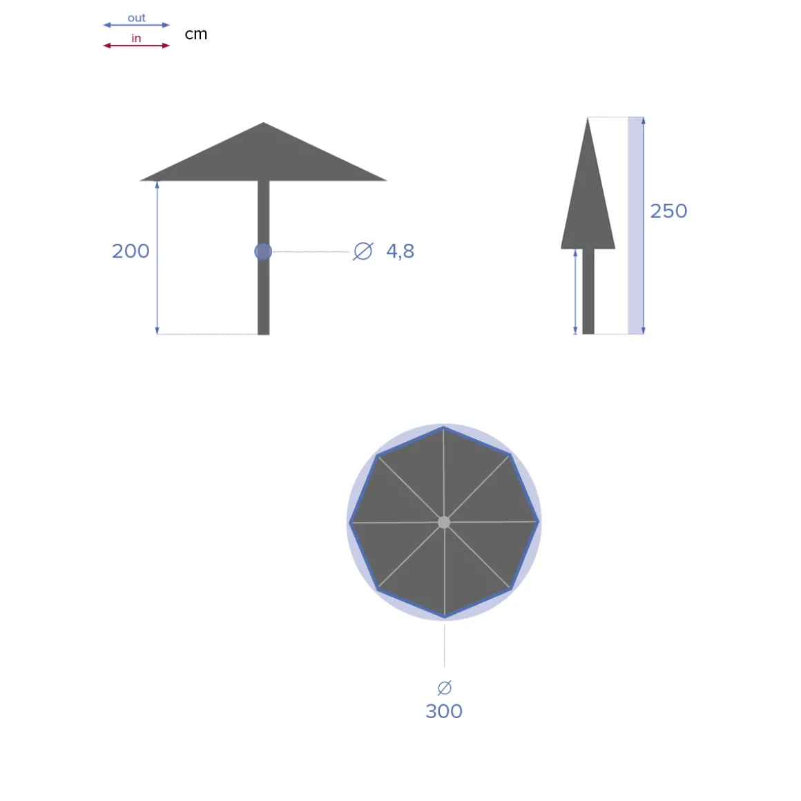 Parasol LOOMPA azul canard 3m