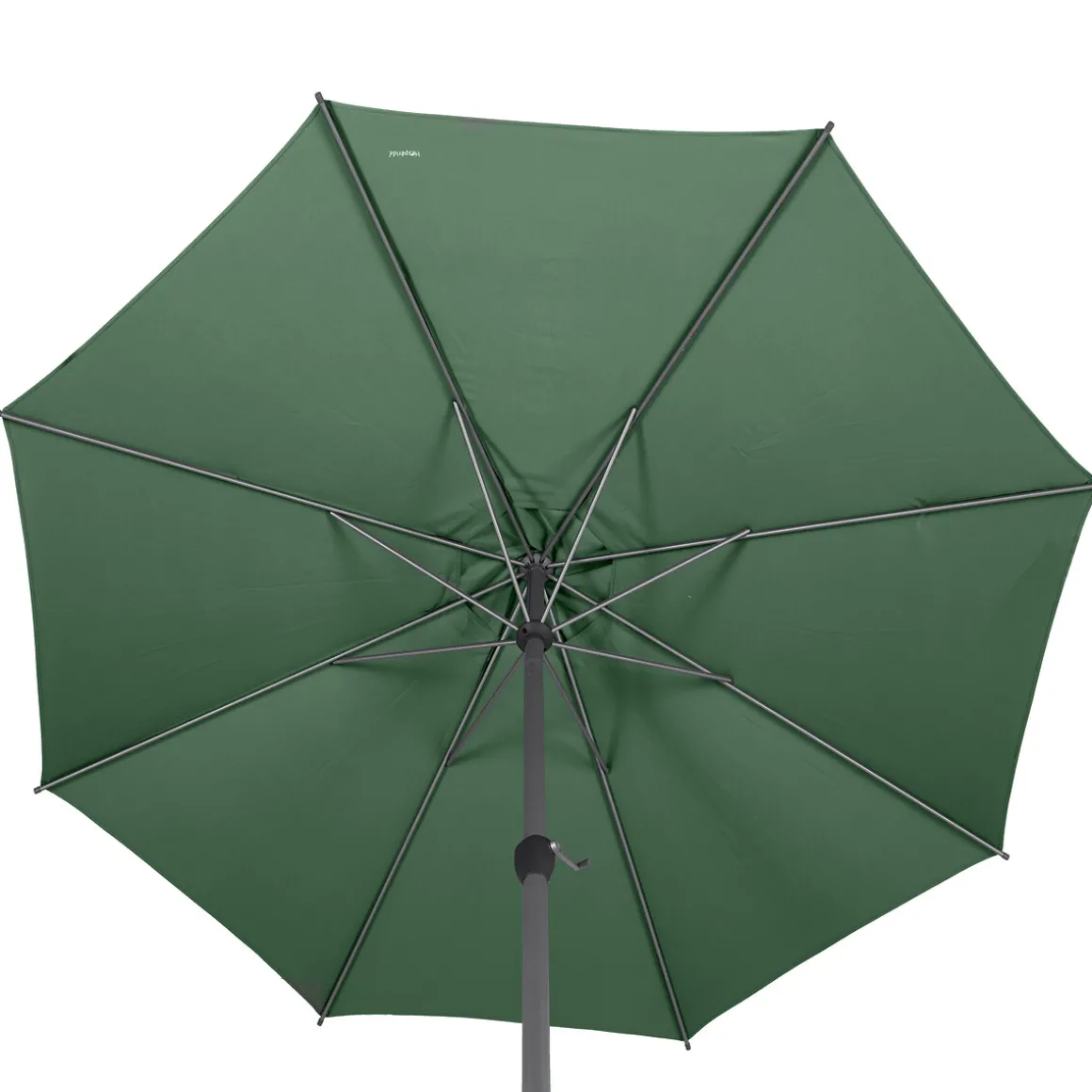 Parasol LOOMPA verde oliva 3m | Base no incluida | Apertura de manivela | Sistema de inclinación | Chimenea de ventilación para facilitar la circulación del aire | Lona atornillada al extremo de las varillas para un mejor mantenimiento de la lona | Cremallera elástica mariposa | Color: Verde Oliva, Gris Oscuro | Medidas: 2.5x3m | Material: Aluminio, Acero, Poliéster | Marca: Hespéride