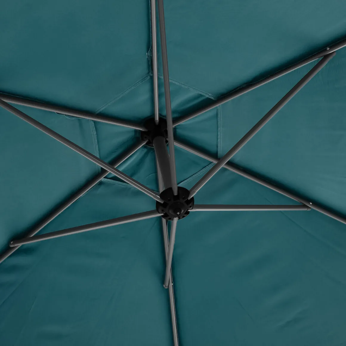 Parasol MANOA excéntrico azul canard 3m | Base no incluida | Tejido con tratamiento hidrófugo que permite que el agua resbale sin penetrar en el material | Chimenea de ventilación para facilitar la circulación del aire | Protección UV | Rotación de 360° | Lona atornillada al extremo de las varillas para un mejor mantenimiento de la lona | Elástico de fijación tipo mariposa | Tipo de apertura: Asa Push up | Color: Azul | Medidas: 2.5x3x3xm | Material: Acero, Aluminio, Poliéster | Marca: Hespéride