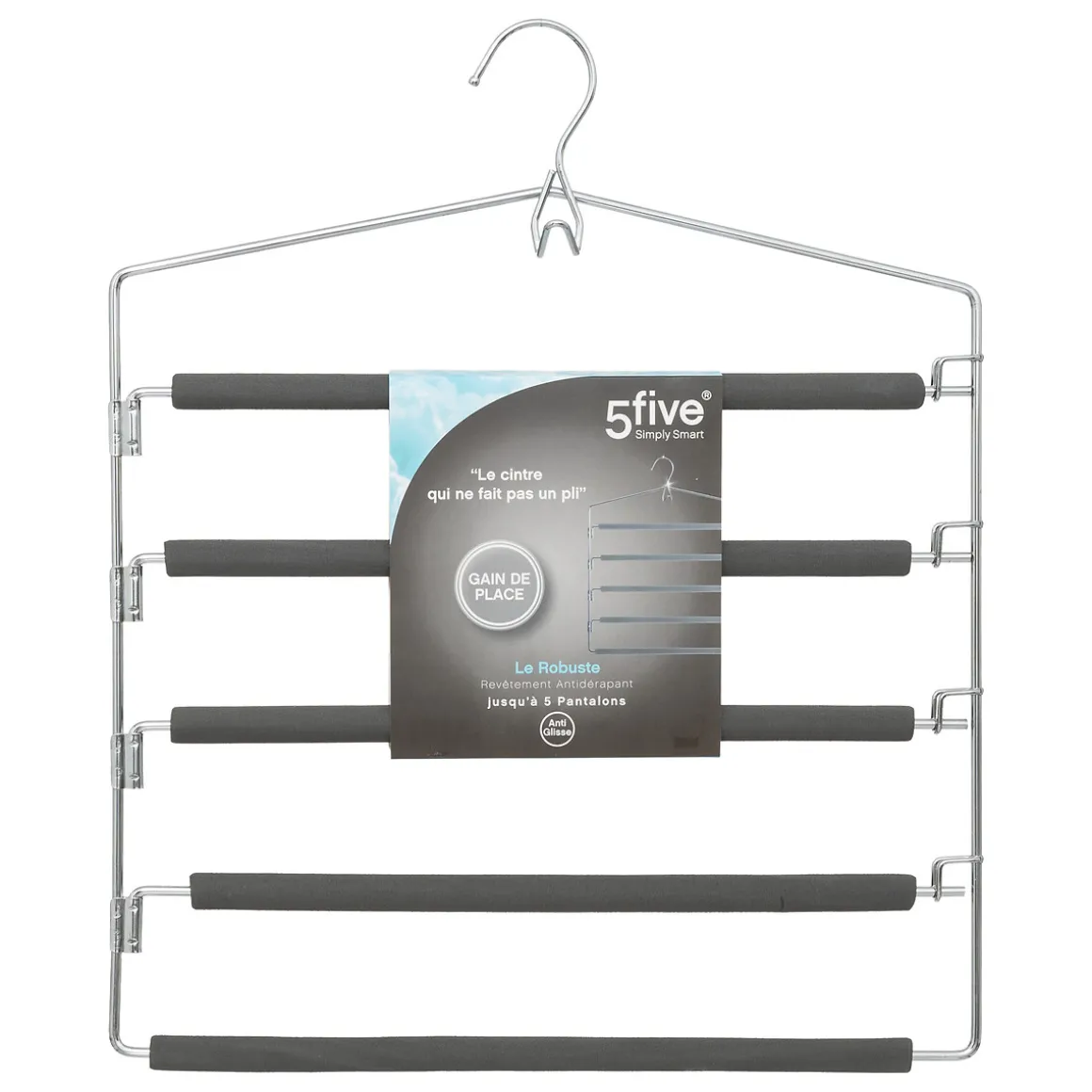 Percha Gris Para 5 Pantalones | Conoce este y más artículos que tenemos disponibles para tu vestidor. ¡Ordenar y organizar tus armarios y vestidores nunca ha sido tan fácil! Descubre la gama de almacenaje hôma | Medidas: 37x44cm | Material: Hierro, Eva | Color: Plateado | Marca: 5Five