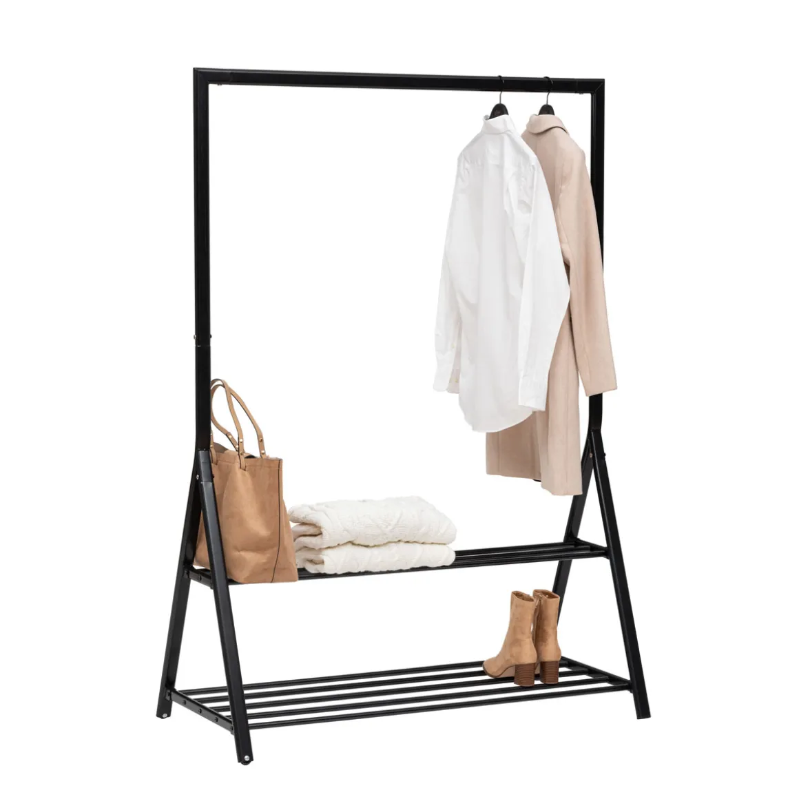 Perchero Con 2 Baldas Athena |Conoce este y más artículos que tenemos disponibles para tu vestidor. ¡Ordenar y organizar tus armarios y vestidores nunca ha sido tan fácil! Descubre la gama de almacenaje hôma | Color: Negro | Medidas: 167×56.5x121cm | Material: Hierro