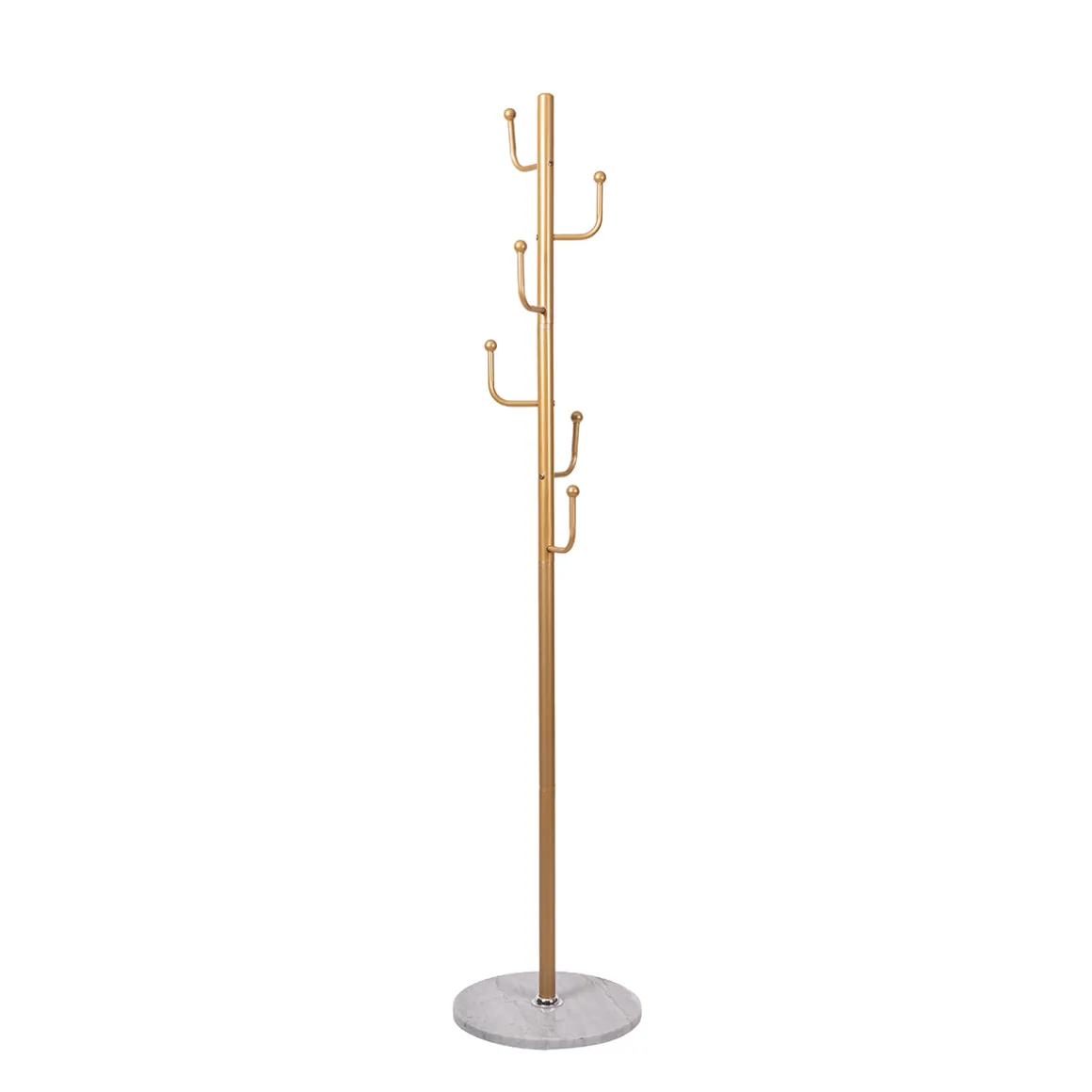 Perchero de pie dorado con 6 ganchos y base marmól | 177cm | Conoce este y más artículos que tenemos disponibles para tu closet . Almacenar y organizar tus armarios y roperos nunca fue tan fácil. Descubre la gama de Almacenaje hôma | Color: Dorado, Blanco | Medidas: 177x37x37cm | Material: Metal, Mármol