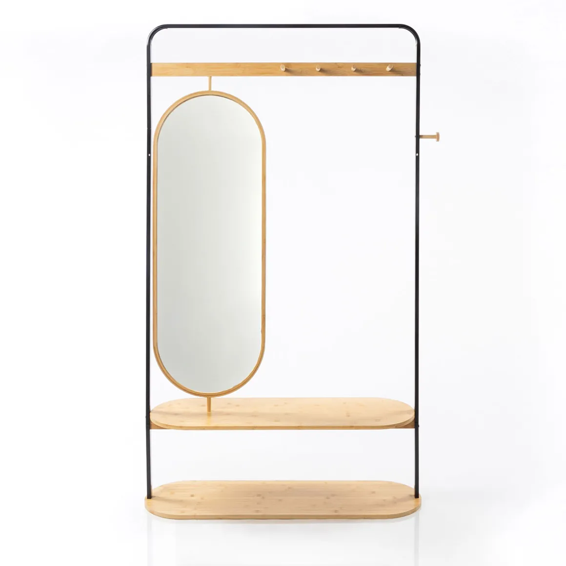 Artículo sólo disponible para recogida en tienda o recogida en tienda en 24 horas. Perchero Recibidor Con Espejo 172cm | Conoce este y más artículos que tenemos disponibles para tu closet . Almacenar y organizar tus armarios y roperos nunca fue tan fácil. Descubre la gama de Almacenaje hôma | Color: Marrón | Medidas: 172x30x100cm | Material: Bambú, Metal, Vidro