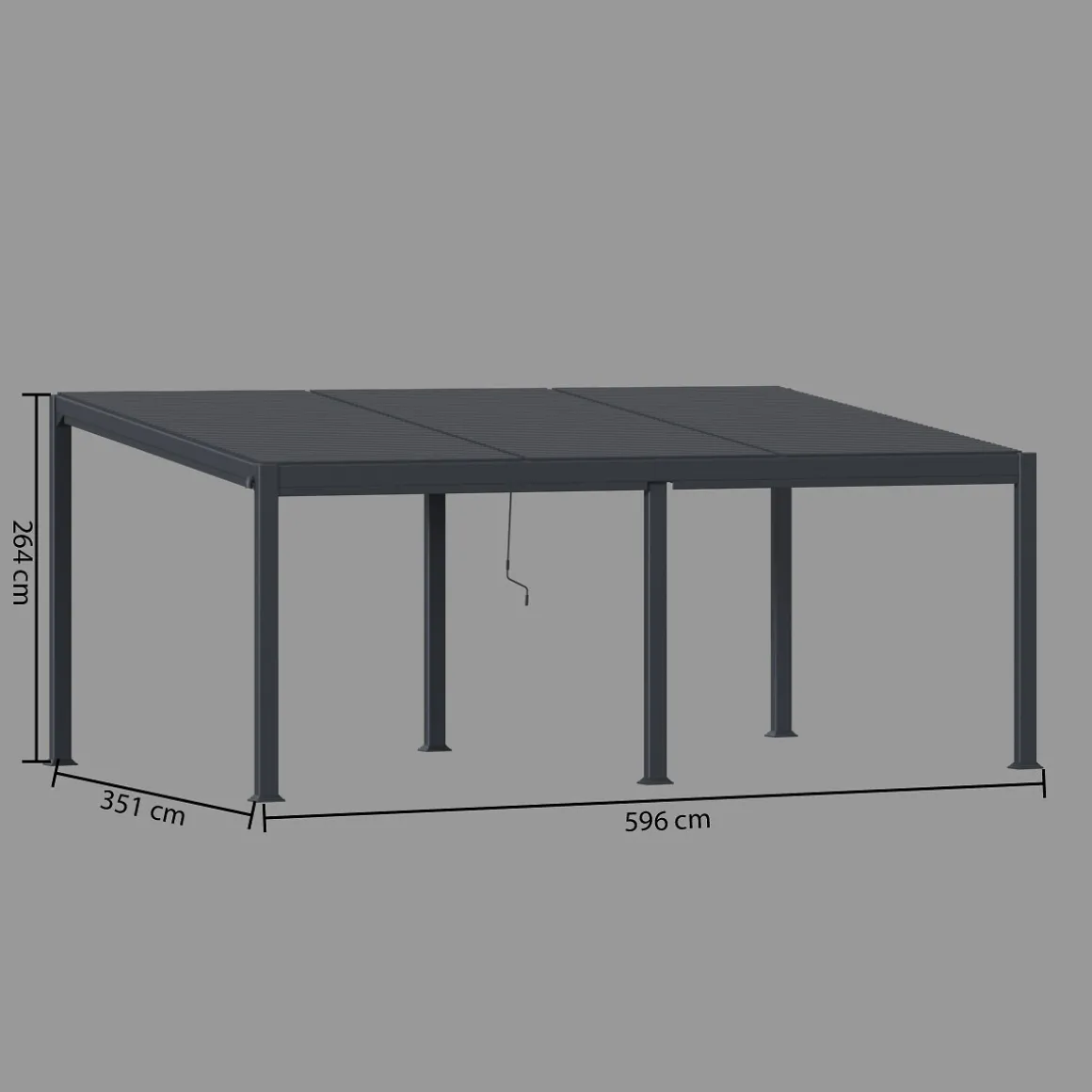 Pérgola AVILA Gris Grafito 3.5x6M | Cortinas No Incluidas | Disfruta al máximo de tu terraza, gracias a la Pérgola Avila Grafito de Hespéride. Esta pérgola de jardín tiene una estructura de aluminio tratada con epoxi antioxidante resistente a los rayos UV, un techo de lamas ajustables mediante manivela y rieles para cortinas | Montaje sencillo para que puedas disfrutar de tu pérgola lo antes posible | Color: Gris Grafito | Medidas: 3,5x6M | Material: Aluminio | Marca: Hespéride